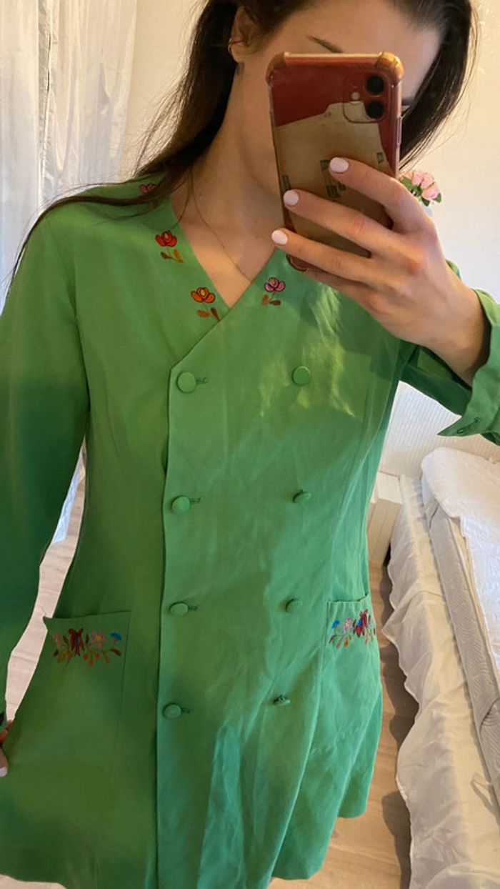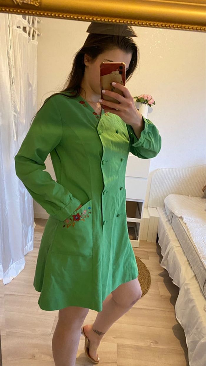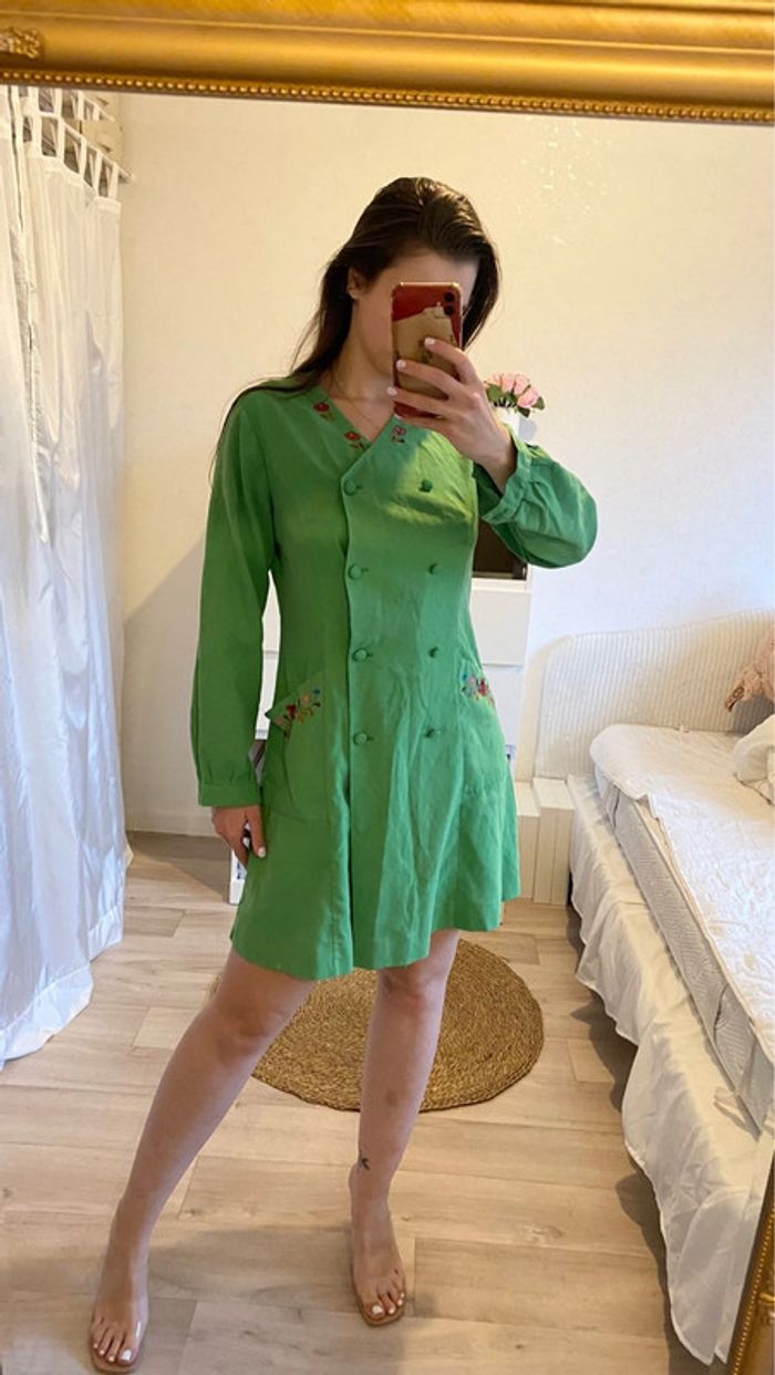Robe vintage verte à broderies - photo numéro 1