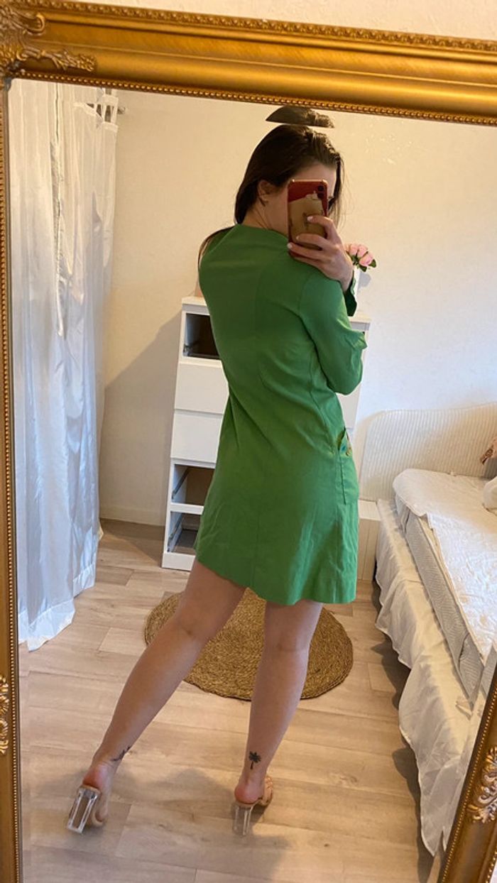 Robe chemise à boutonnage qui s’ouvre comme un gilet, deux poches avant. Possède quelque taches en bas. Taille 44 indiqué mais c’est un 38 #mojito1Taille38