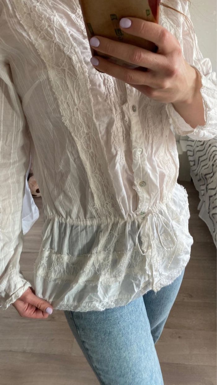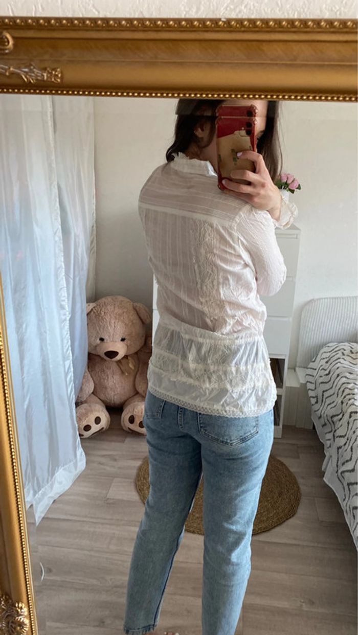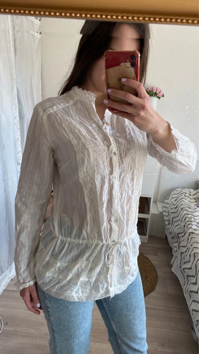 Chemise qui peut se resserrer avec un lacets devant en bas, dentelle et détails un peu partout. À porter avec des sous vêtements clair #mojito1Taille38