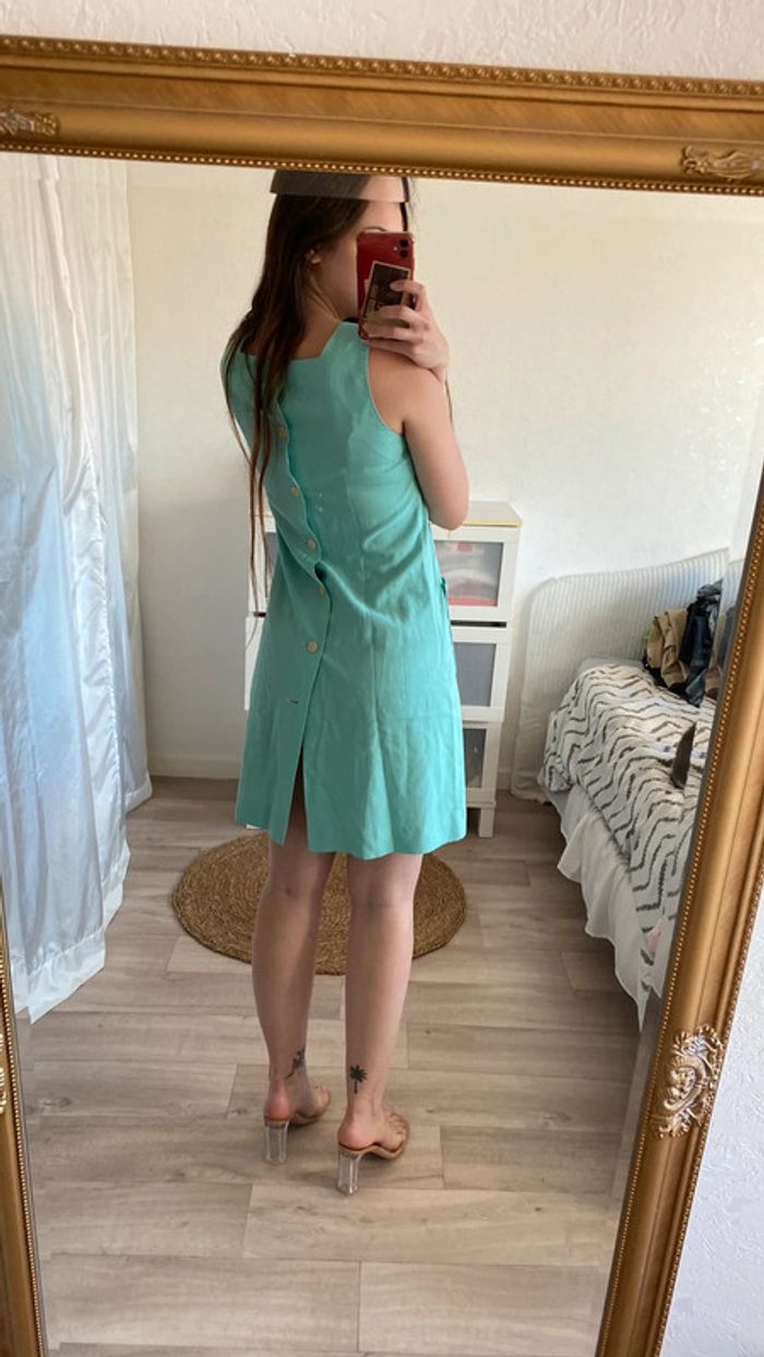 Robe vintage bleu turquoise brodé - photo numéro 3