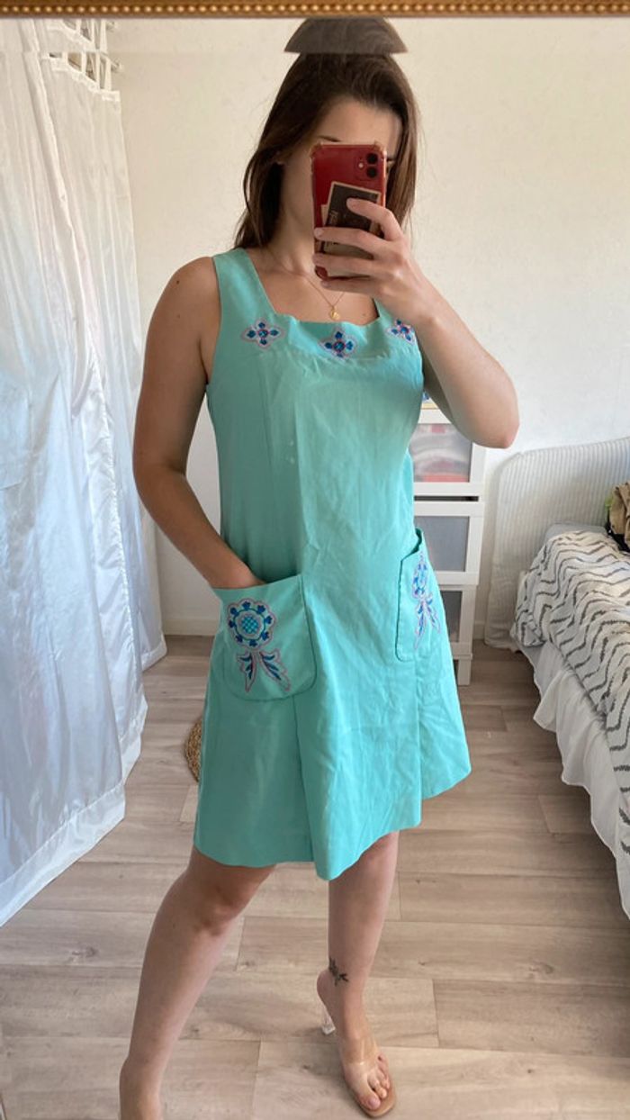 Robe vintage bleu turquoise brodé - photo numéro 1