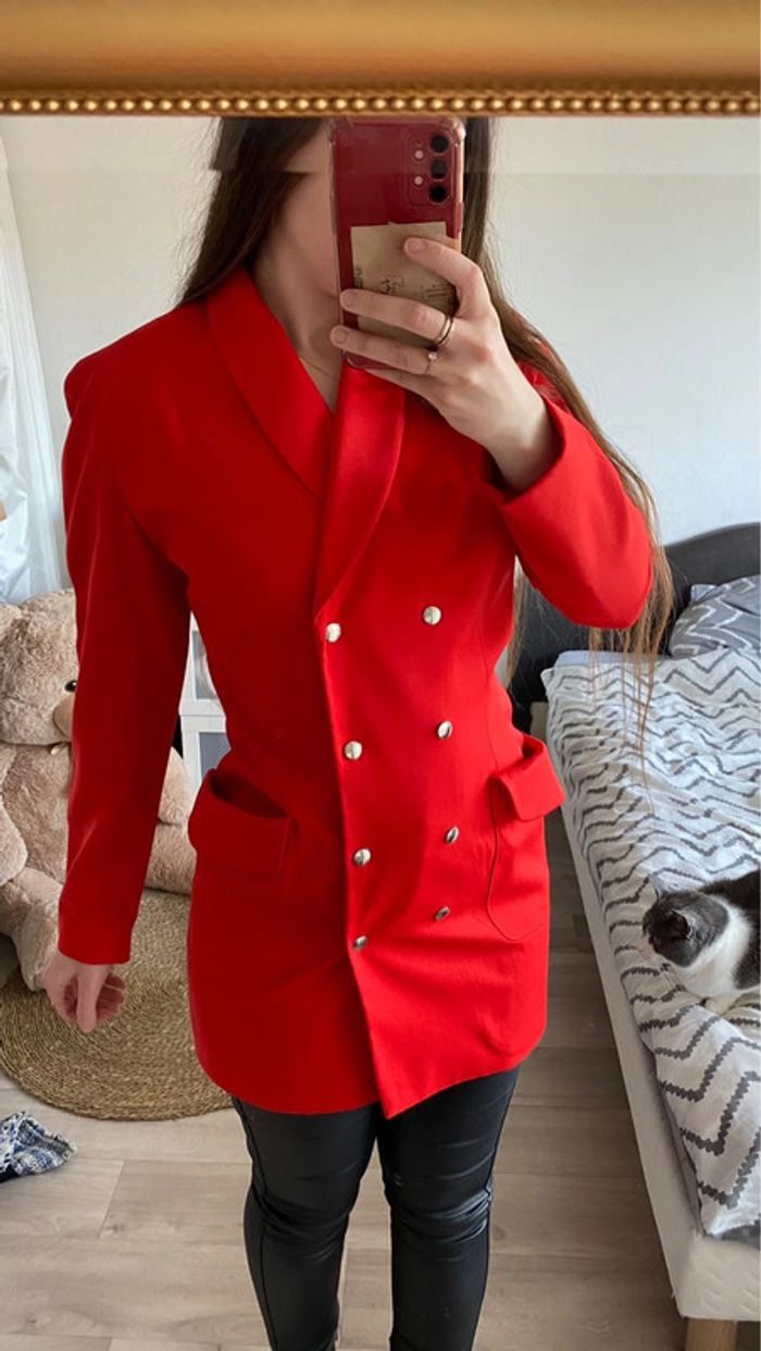 Manteau blazer long rouge vintage - photo numéro 1