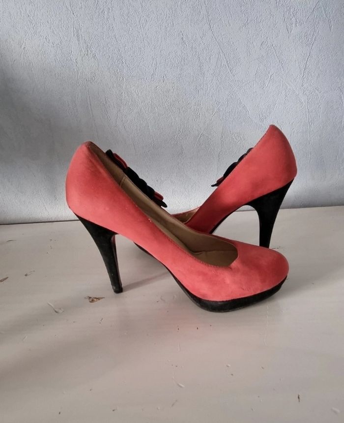 escarpins à talons corail et noir bout arrondi taille 38 - photo numéro 1