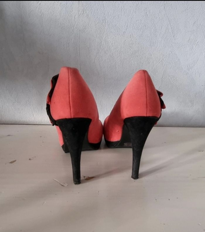 escarpins à talons corail et noir bout arrondi taille 38 - photo numéro 2