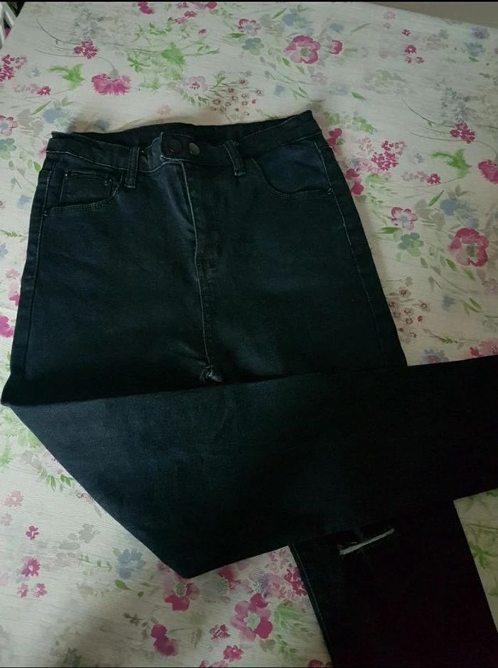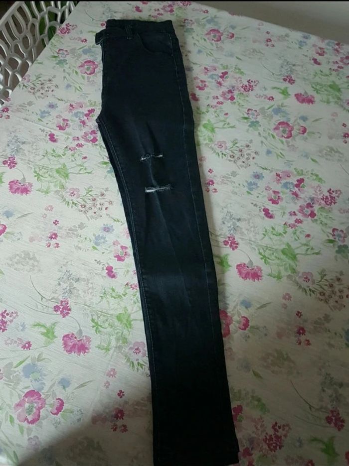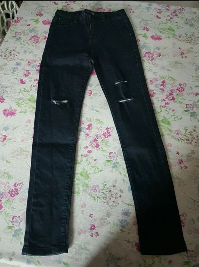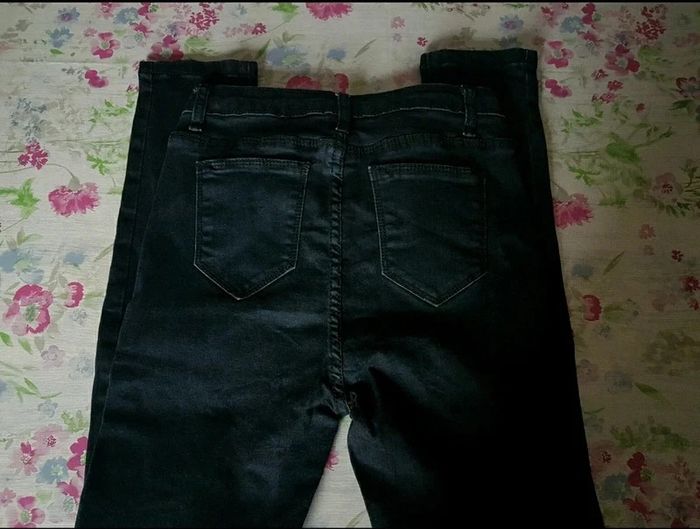 Jean, marque miqitian. Taille 29. N'hésitez pas si vous avez besoin de mesures avant de commander 😊 Bleu marine tellement foncé qu'il fait noir, on a dû mal à savoir si c'est bleu marine ou noir. #destroy #troué #brut #mov59Femme #noir