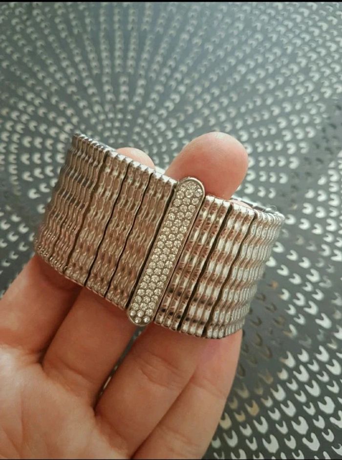 Joli bracelet fantaisie, simple mais qui fait son effet. Avec strass. Idéal pour finir une tenue ou une occasion. #cérémonie #mariage #baptême #soirée #manchette #brillant #strass #large #mov59accessFem