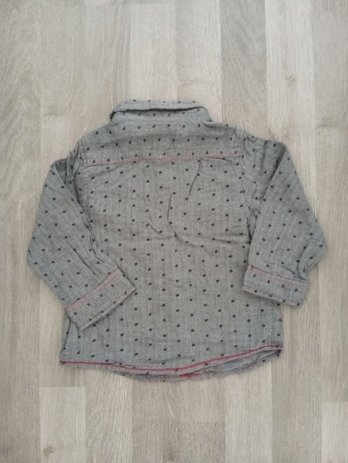 Chemise garçon, marque Tissaia, taille 18 mois, motifs étoiles, boutons pressions.