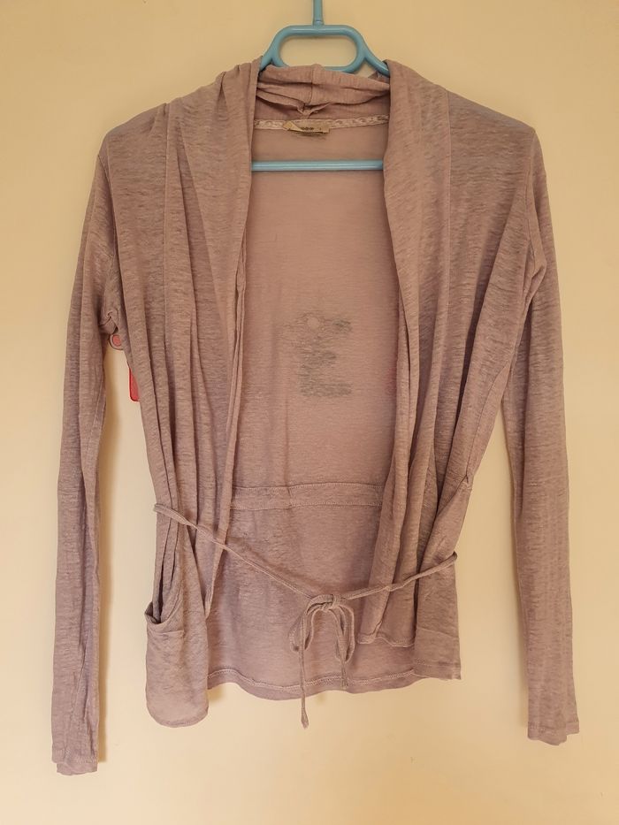 Gilet léger en lin pour femme, en très bon état - Marque : Bonobo - Taille : S (convient à un 36) - Coloris : parme - Pas de boutons mais lien à nouer à la taille, 2 poches - Lavable en machine à 30°C - Composition : 100% lin - Maison non fumeur et sans animaux #elfedneigesfemme #elfedneiges36