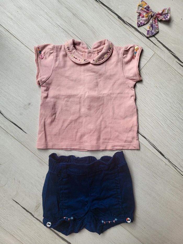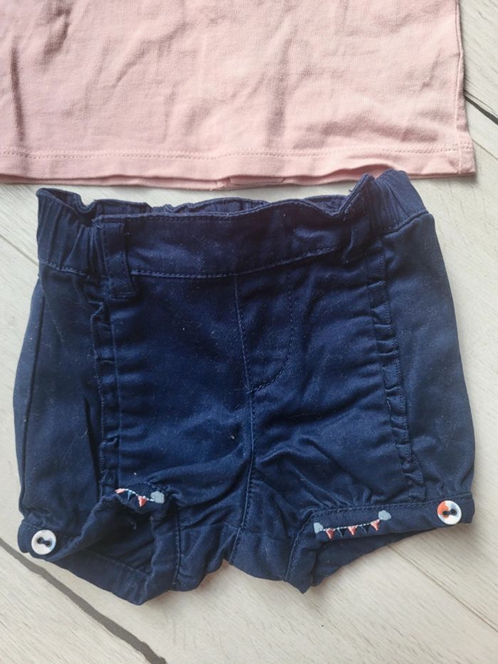 Superbe ensemble 2 pièces. Sergent major fille 3 mois. Un short marine et un tee shirt rose. Broderies fleurs. #3moistatiana #sergentmajor #ensemble #sm #broderies