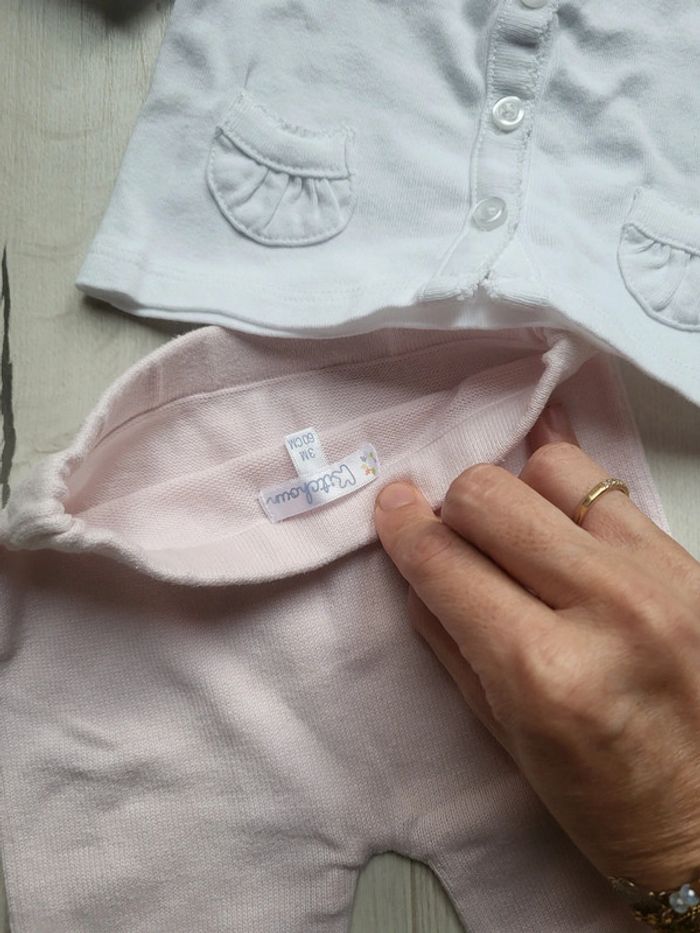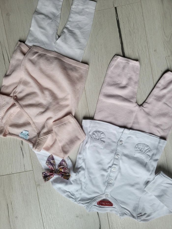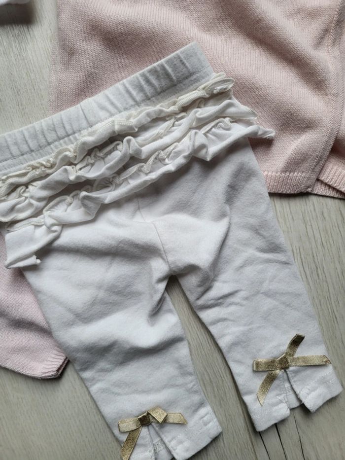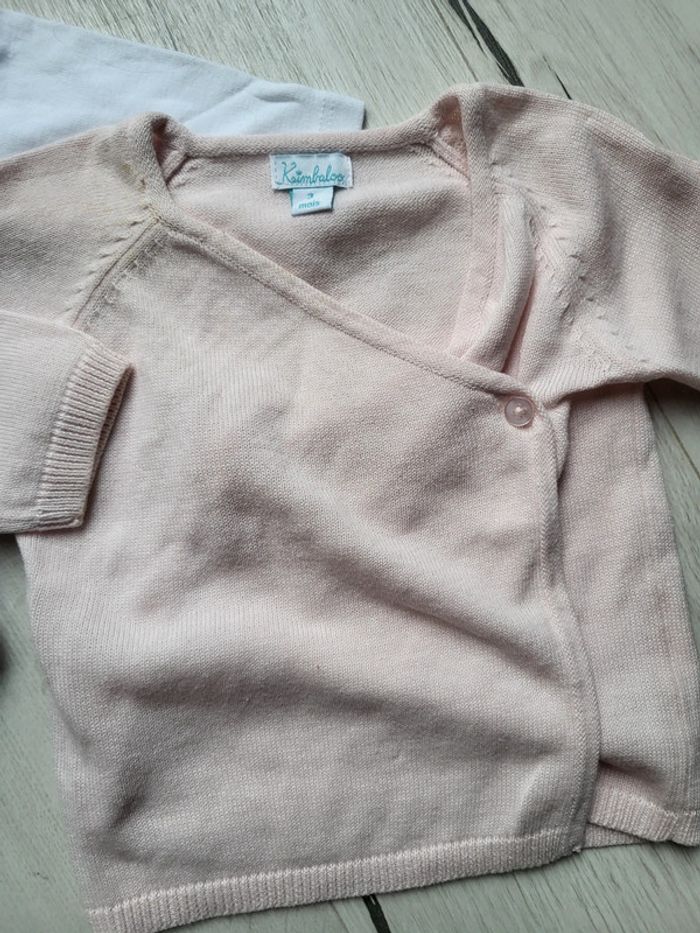 Très bon état. Joli petit lot dans les tons pastels, rose poudré... Deux gilets tissaia kimbaloo. Deux leggings kitchoun tape à l'œil. Taille 3 mois. #3moistatiana #3mois #lottapealoeil #lot3mois #lothiver #hiver #kitchoun #kimbaloo #froufrous #giletcachecoeur