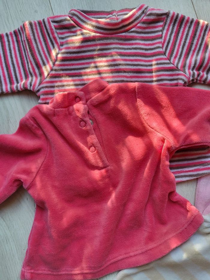 Excellent état. Lot pour la nuit fille 3mois. Un pyjama 1 pièce, 2 hauts et 1 bas. In extenso et baby club. #3moistatiana #pyjama #pyjamavelours #3mois #pyjama3mois #velours #pyjamavelours