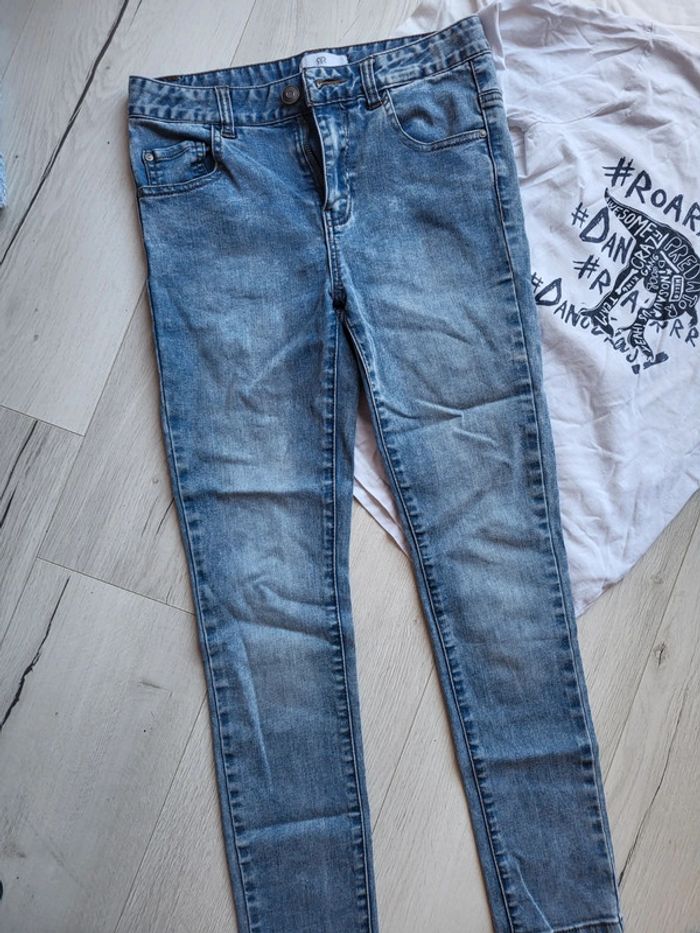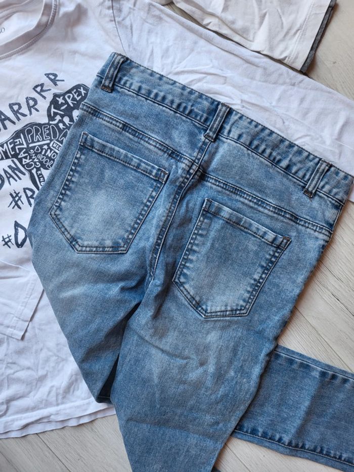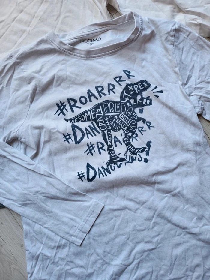 Très bel ensemble 3 pièces mi-saison hiver. Garçon 12ans. Un jean tissu souple la redoute. Un tee shirt blanc motif dinosaure inextenso. Un tee shirt okaidi. #12anstristan #okaidi #laredoute #jean #3pieces #mi-saison #inextenso #dinosaure #12ans #style