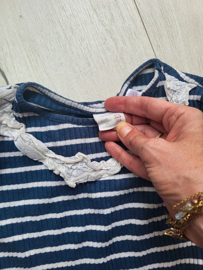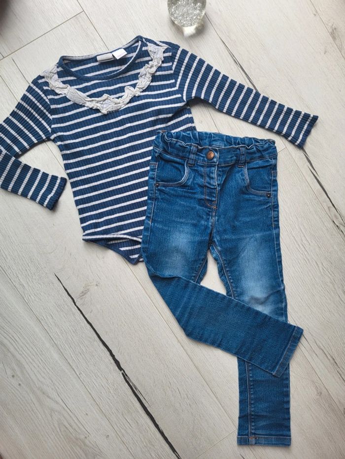 Ensemble 2 pièces fille 4ans. Un body côtelé zara. Un jean kiabi (mini trou au genou). Très mignon. #4anstatiana #zara #misaison #kiabi #rayures #body #marinière