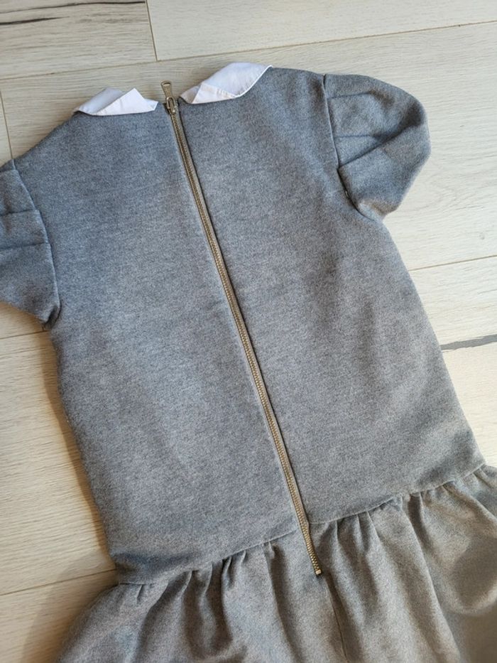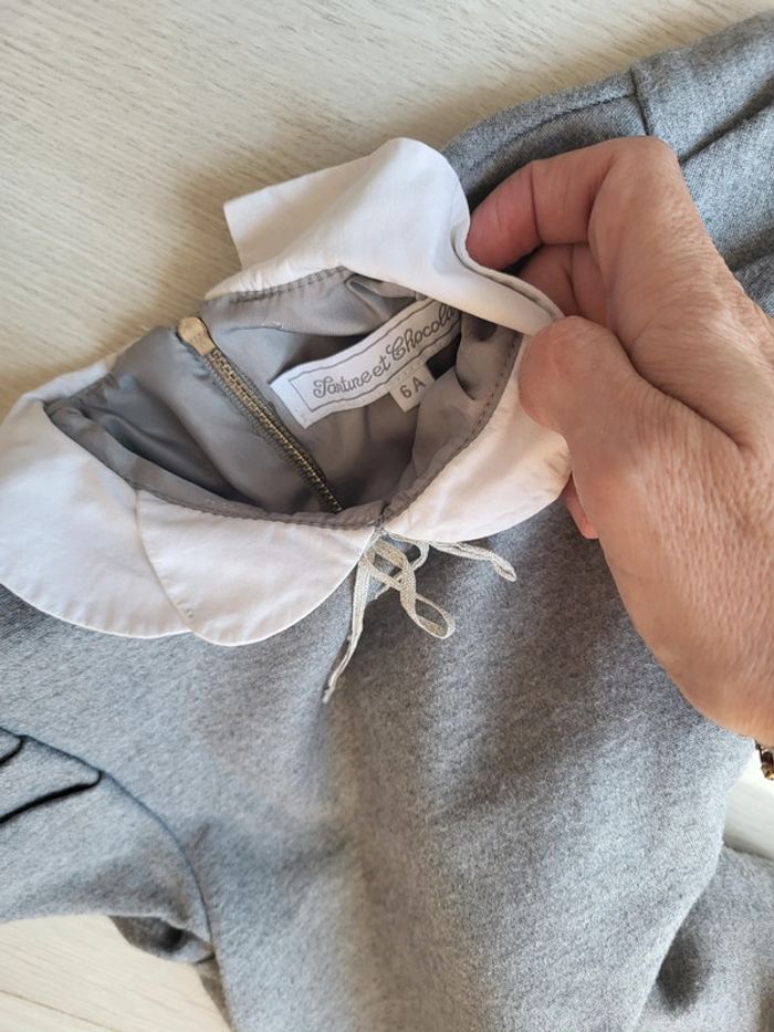 Robe grise tartine et chocolat. Col Claudine. Taille 6 ans. Portée 1 fois lors d'une cérémonie. Comme neuve. Bien épaisse, tissu chic et joli rendu. #6anstatiana #robe #robechic #cérémonie #6ans #tartineetchocolat #colclaudine