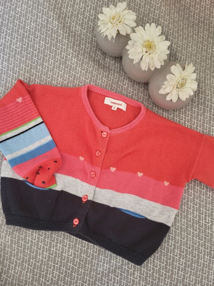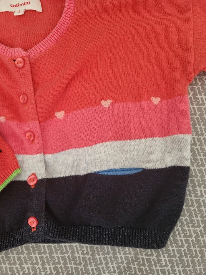 Gilet court catimini. Jolies couleurs. Taille 2 ans. Petites poches et cœurs brodés. #2anstatiana #gilet #2ans #cœurs #catimini