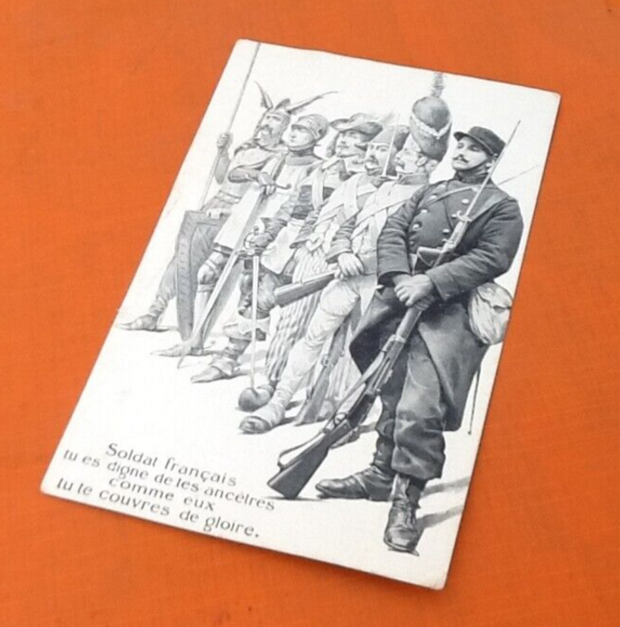 (article vendu en l' état, état d' usage, pliure angle haut gauche, voir toutes les photos) Carte postale ancienne Soldat français tu es digne de tes ancètres comme eux tu te couvres de gloire