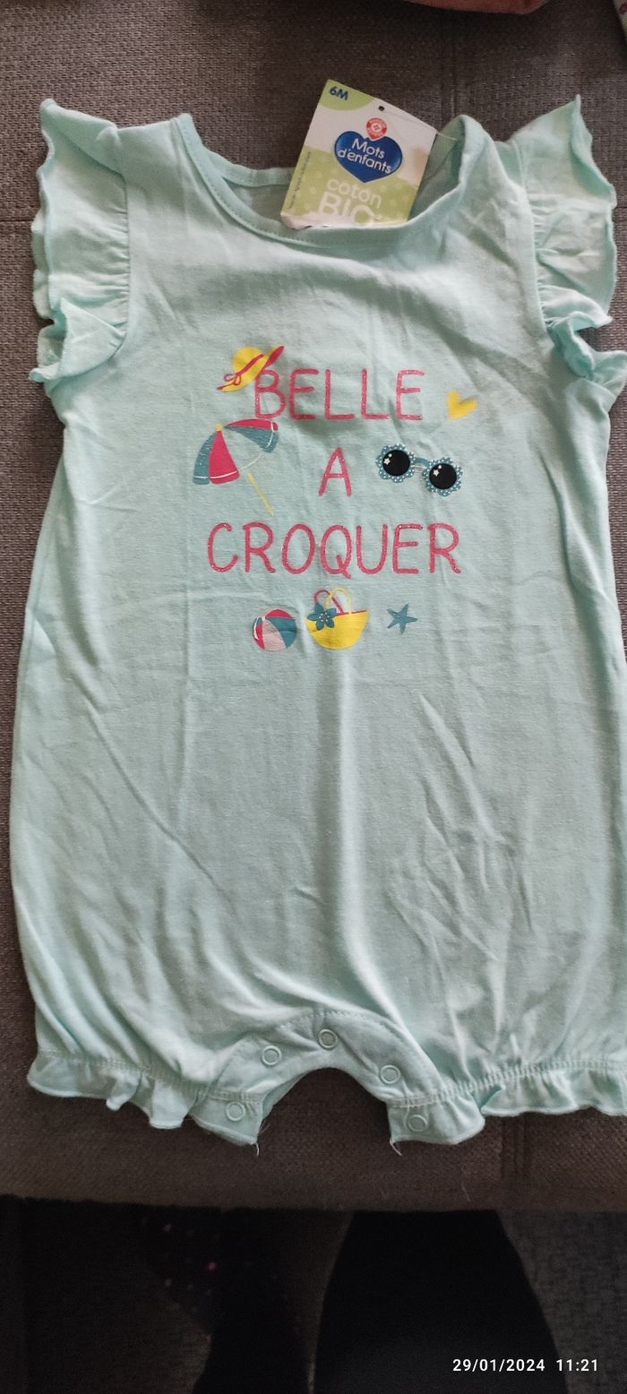 Combinaison légère été. Coton biologique. Taille 6mois/68cms. Marque : Mots d'enfants. Neuve,jamais portée.