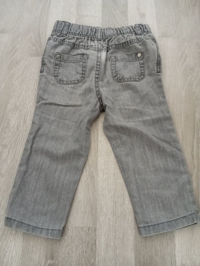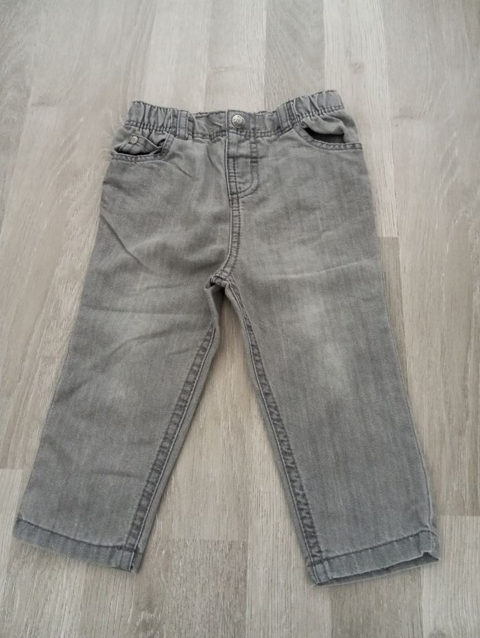 Jean marque Orchestra, taille 18 mois, 81 cm avec bouton pression. Il a quelques bouloches mais reste en très bon état.