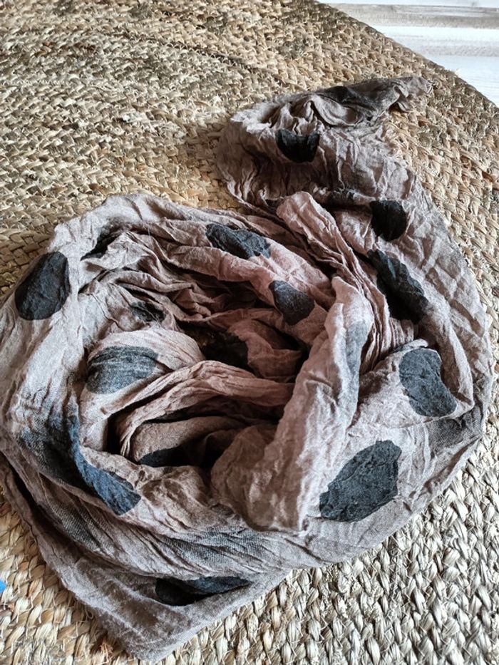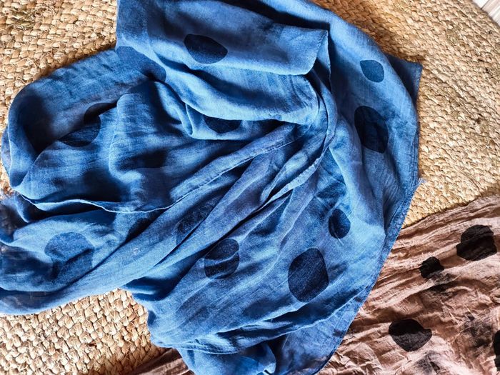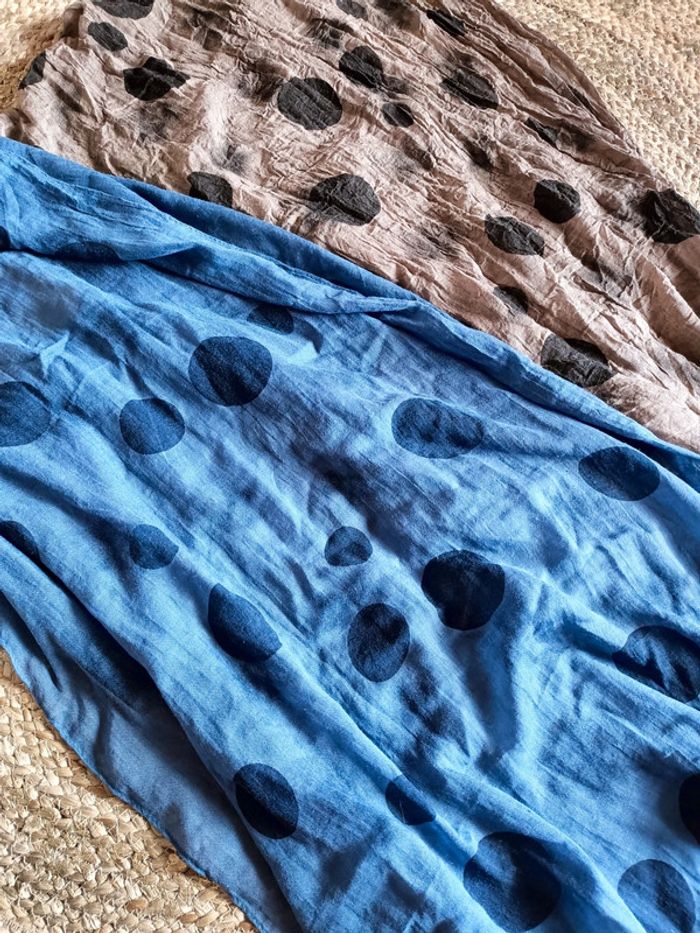 Lot de 2 jolis foulards femme Écharpe Une Bleu et une marron à pois N'hésitez pas à regarder mon dressing et faire des lots pour profitez des frais de port 😁