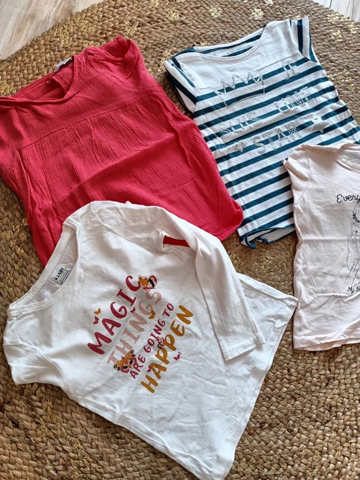 Lot de 3 tee shirt manche longue et une blouse couleur corail. Taille 6 ans Fille N'hésitez pas à regarder mon dressing et faire des lots pour profitez des frais de port 😁