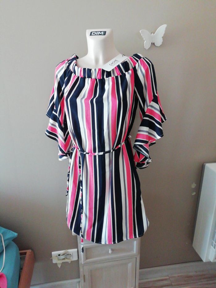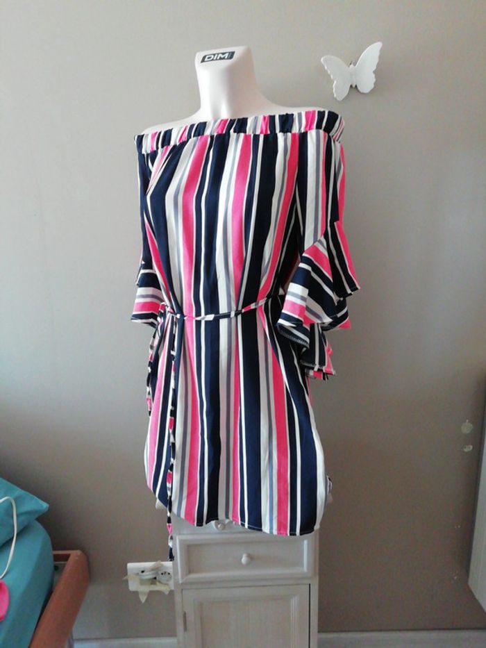 Robe cache cache t36 ou taille S Manche évasé, neuve avec étiquette À rayures Couleur bleu marine, crème et corail rosé N'hésitez pas à regarder mes autres ventes et profitez des frais de port ainsi que réductions selon nombre d'articles 😉