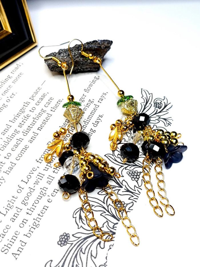 Magnifique paire de boucles d'oreilles pendantes, avec perles et chaîne. Couleur doré, vert, et noir. Très bon état. D'autres bijoux sont à découvrir dans mon dressing #bijouxsupernova ⚜️ Je suis disponible pour d'autres renseignements / ou demandes de lot. 💙 Les envois se font soit le jour même ou en 72h maxi ! Tags Vintage chic hippie 60's 70's 80's 90's 00's Y2k foulard soie collier bijoux fantaisie signature boucles d'oreilles bague bracelet manchette jonc parure pendentif médaille religieux ancien brocante antiguo antico juwelen bigiotteria joyería antigua antique antik vieux victorien belle époque 1920 art déco art nouveau 1930 années 50 lot gros lot lotto set carré friperie poinçon pièce rare argenté doré bronze perles strass