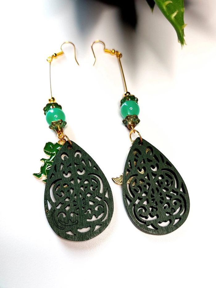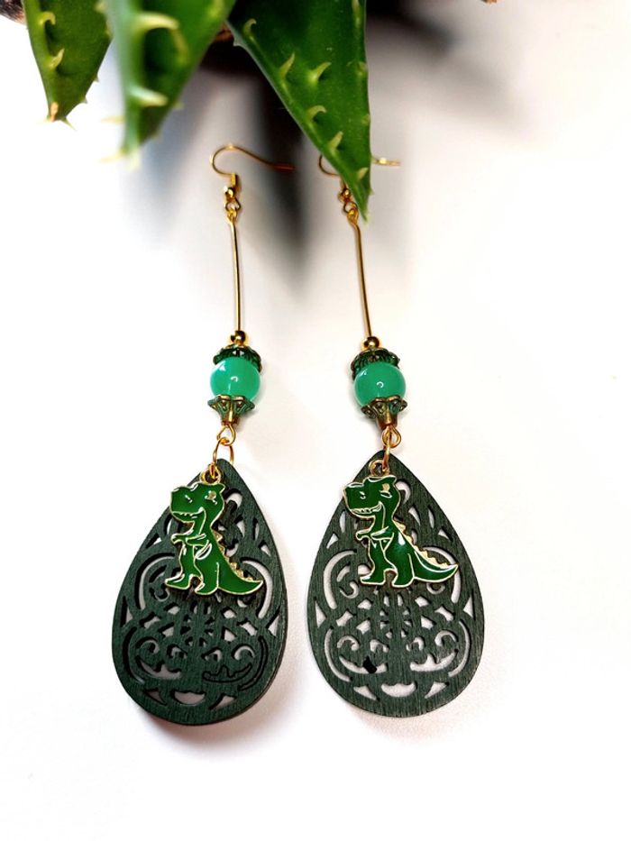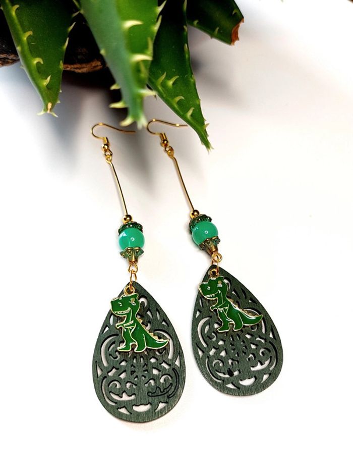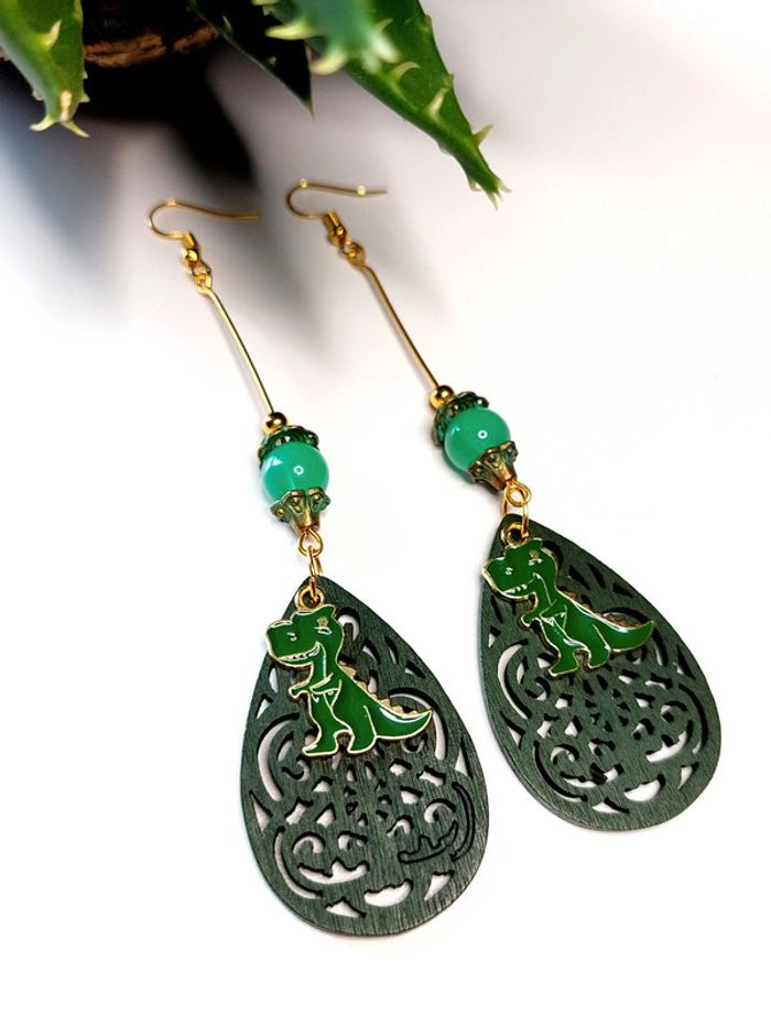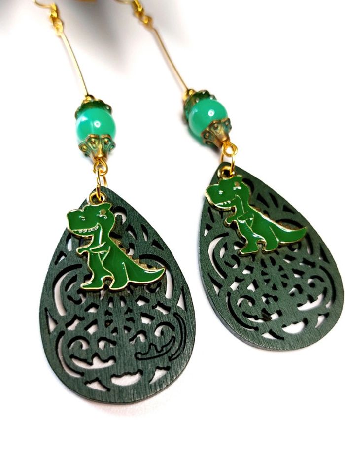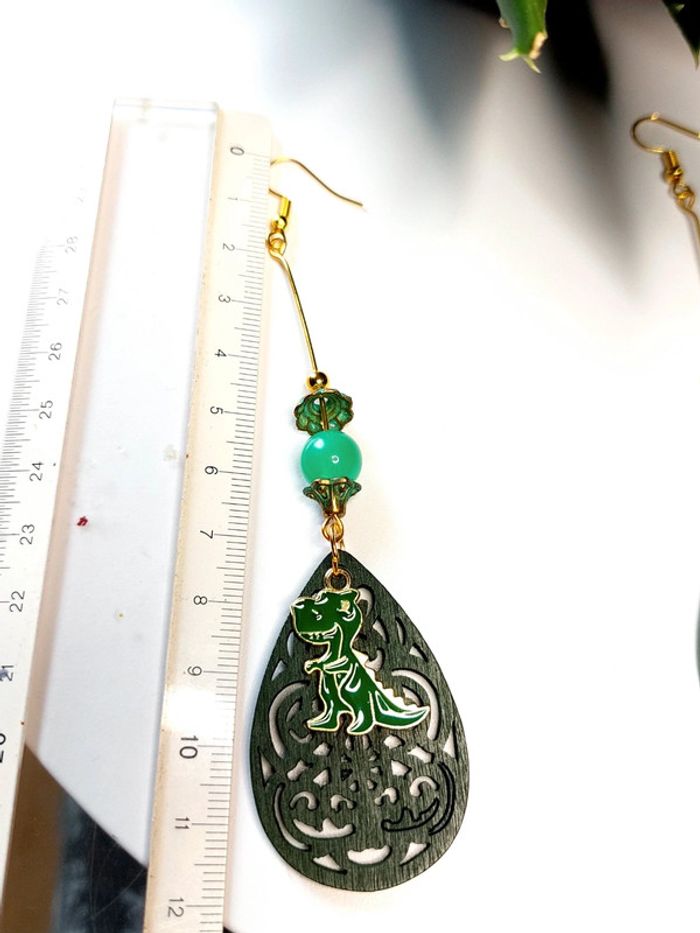 Magnifique paire de boucles d'oreilles pendantes dinosaures - photo numéro 7