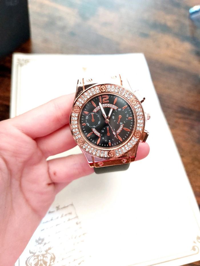 Magnifique montre neuve, bracelet en simili cuir, couleur or rose avec strass. D'autres bijoux sont à découvrir dans mon dressing #bijouxsupernova 🌌 Je suis disponible pour d'autres renseignements / ou demandes de lot. 🌌 Les envois se font soit le jour même ou en 72h maxi ! 🌌 J'accepte les offres raisonnables et les réductions sont activées sur les lots, de plus, un petit cadeau est toujours rajouté au colis. Tags Vintage chic hippie 60's 70's 80's 90's 00's Y2k foulard soie collier bijoux fantaisie signature boucles d'oreilles bague bracelet manchette jonc parure pendentif médaille religieux ancien brocante antiguo antico juwelen bigiotteria joyería antigua antique antik vieux victorien belle époque 1920 art déco art nouveau 1930 années 50 lot gros lot lotto set carré friperie poinçon pièce rare argenté doré bronze perles strass