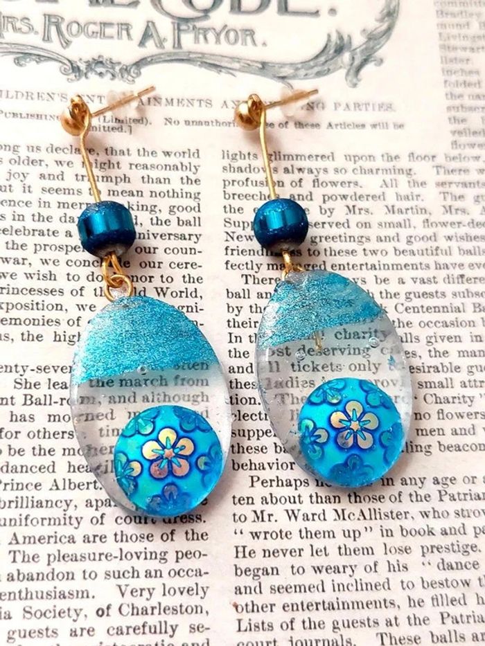 Magnifique paire de boucles d'oreilles pendantes en résine, style vintage Y2k - photo numéro 1