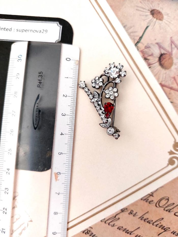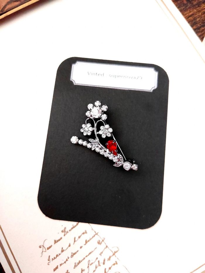 Magnifique broche vintage à strass blanc et rouge - photo numéro 2