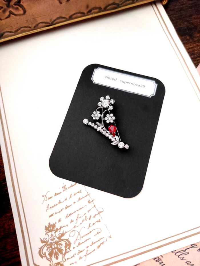 Magnifique broche vintage couleur argenté avec strass blanc et rouge. Décor floral. Très bon état. D'autres bijoux sont à découvrir dans mon dressing #bijouxsupernova 🌌 Je suis disponible pour d'autres renseignements / ou demandes de lot. 🌌 Les envois se font soit le jour même ou en 72h maxi ! 🌌 J'accepte les offres raisonnables et les réductions sont activées sur les lots, de plus, un petit cadeau est toujours rajouté au colis. Tags Vintage chic hippie 60's 70's 80's 90's 00's Y2k foulard soie collier bijoux fantaisie signature boucles d'oreilles bague bracelet manchette jonc parure pendentif médaille religieux ancien brocante antiguo antico juwelen bigiotteria joyería antigua antique antik vieux victorien belle époque 1920 art déco art nouveau 1930 années 50 lot gros lot lotto set carré friperie poinçon pièce rare argenté doré bronze perles strass