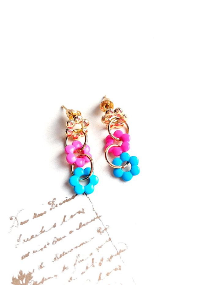Magnifique paire de boucles d'oreilles pendantes à clou fleurs - photo numéro 4