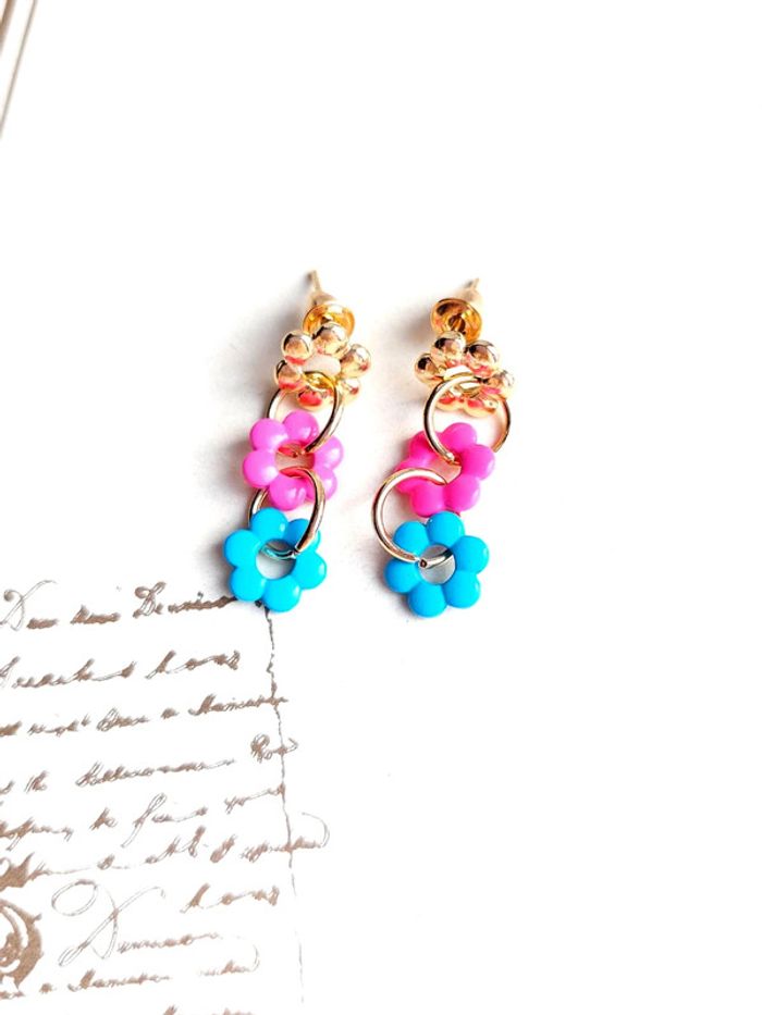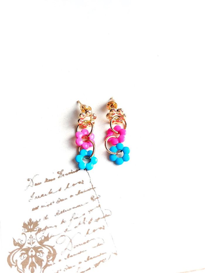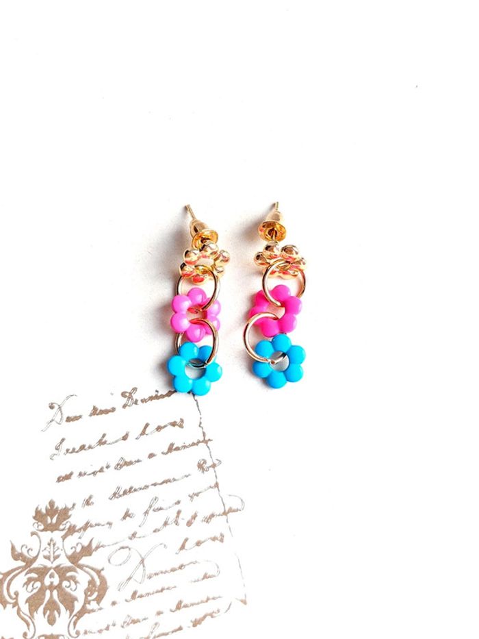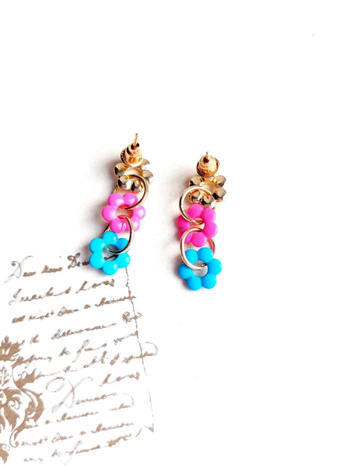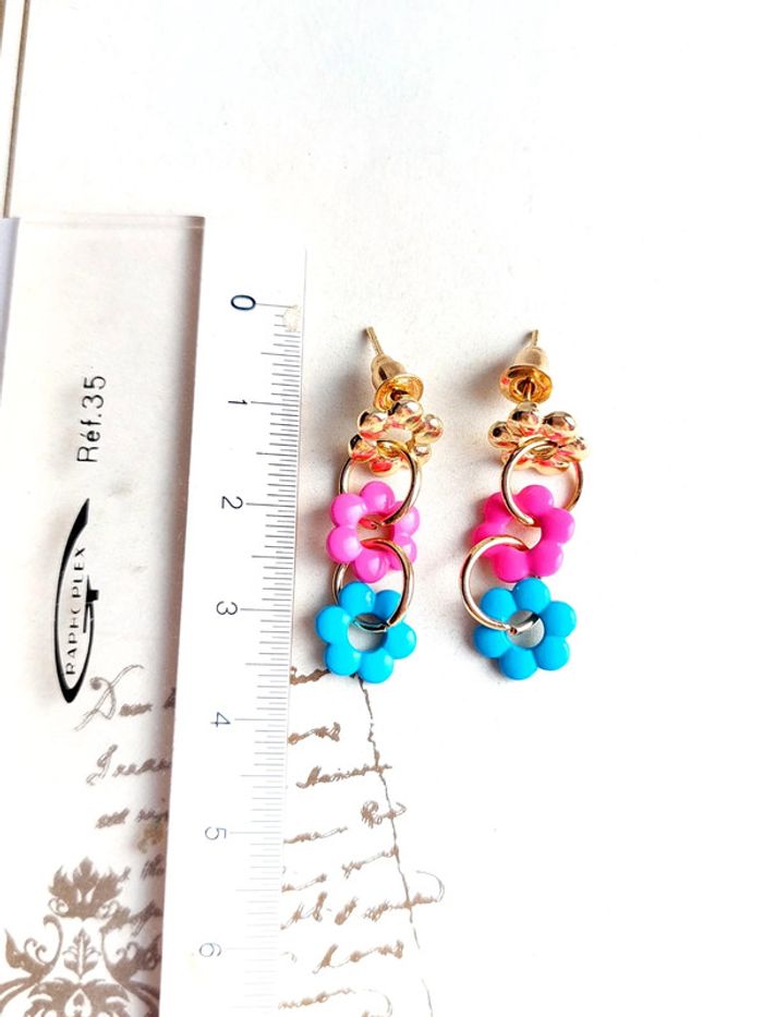 Magnifique paire de boucles d'oreilles pendantes à clou fleurs - photo numéro 5