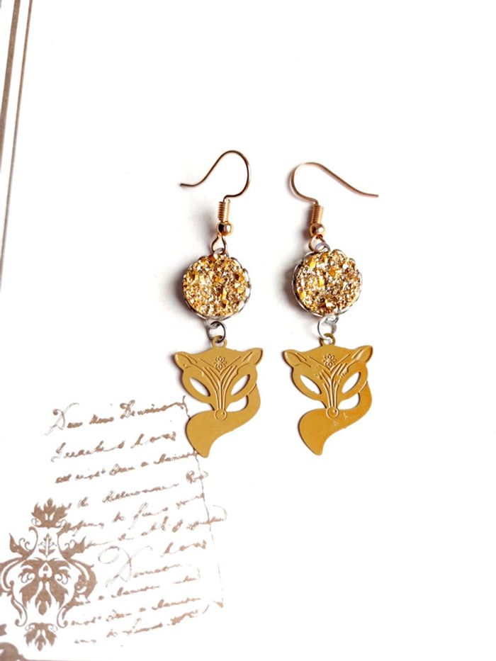 Magnifique paire de boucles d'oreilles pendantes renarde bohème - photo numéro 2