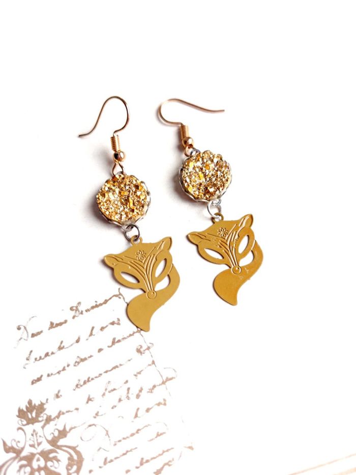 Magnifique paire de boucles d'oreilles pendantes renarde bohème - photo numéro 1