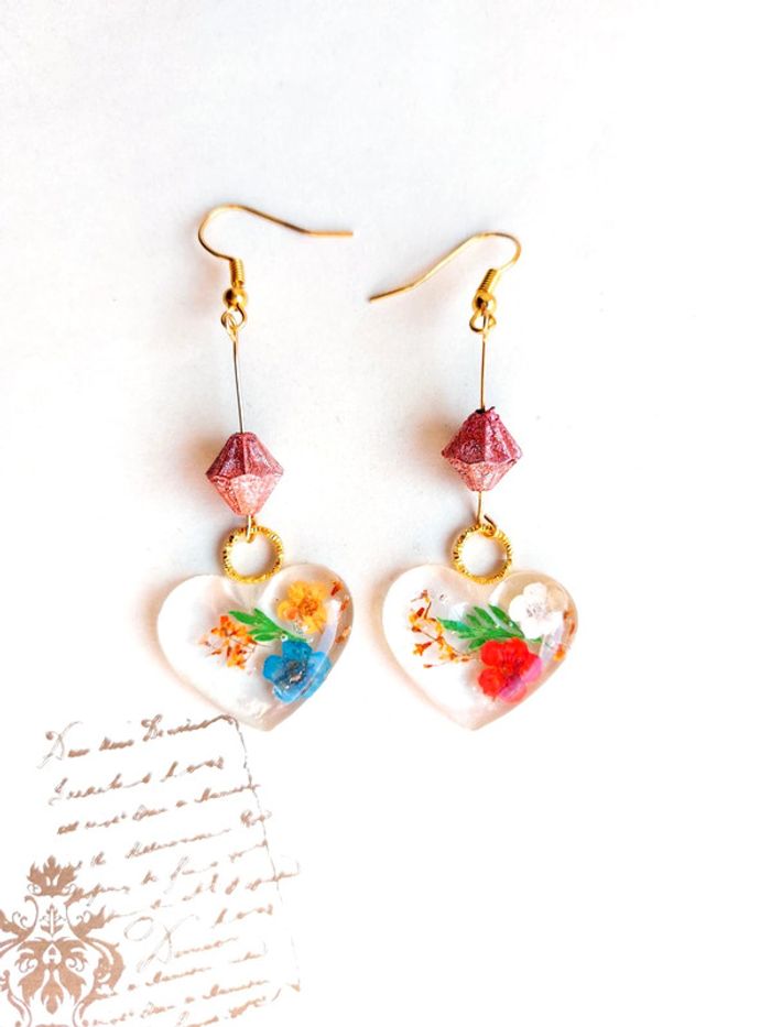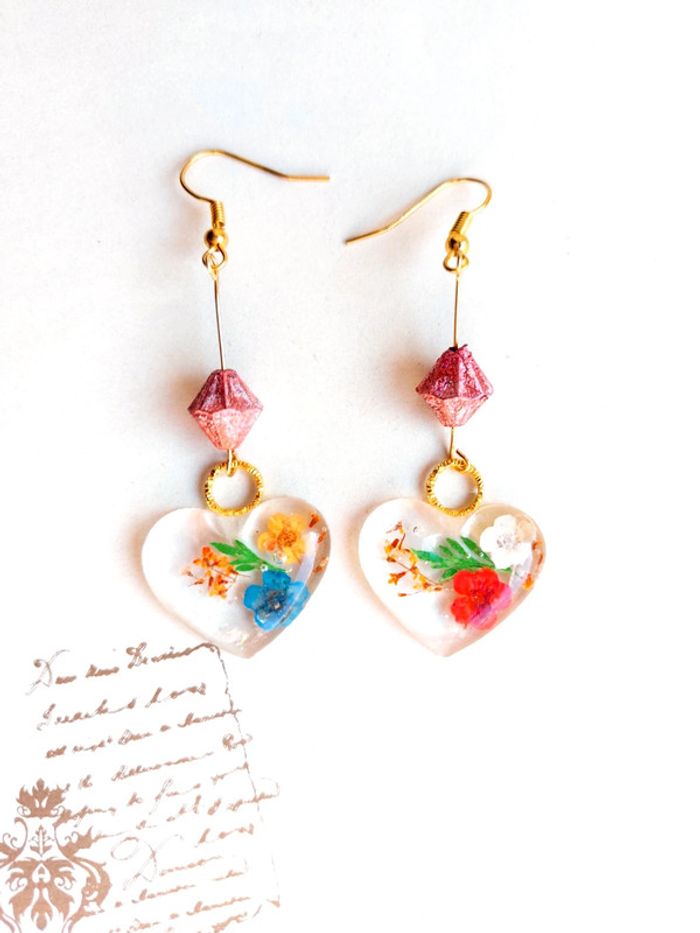 Magnifique paire de boucles d'oreilles pendantes en résine, cœur avec fleurs séchées multicolore. Très bon état. D'autres bijoux sont à découvrir dans mon dressing #bijouxsupernova 🌌 Je suis disponible pour d'autres renseignements / ou demandes de lot. 🌌 Les envois se font soit le jour même ou en 72h maxi ! 🌌 J'accepte les offres raisonnables et les réductions sont activées sur les lots, de plus, un petit cadeau est toujours rajouté au colis. Tags Mode vintage chic hippie 60's 70's 80's 90's BCBG robe chemise pantalon jupe classe bijoux boucles d'oreilles collier pendentif bracelet celtique ethnique bohème ésotérique gothique punk grunge old school geek ancien brocante friperies france Paris parisienne qualité couture tournesol marilyn Monroe astro cosmétiques produits de beauté tissu japon breloque acier inoxydable plaqué or automne hiver printemps été Noël cadeau lune moon child fleurs petit prix réduction lot chouchou scrunchie rétro kawaii japon t-shirt débardeur tunique blouse chemisier camisa camicia vestido vestito pantalones remise lotes jurk Flores brillant coton polyester satin soie jeans elastane sexy élégant pièce rare rome Madrid multicolore noir blanc rouge bleu jaune vert rose orange violet marron pas cher soldes 50% unique look outfit tenue complète conjunto