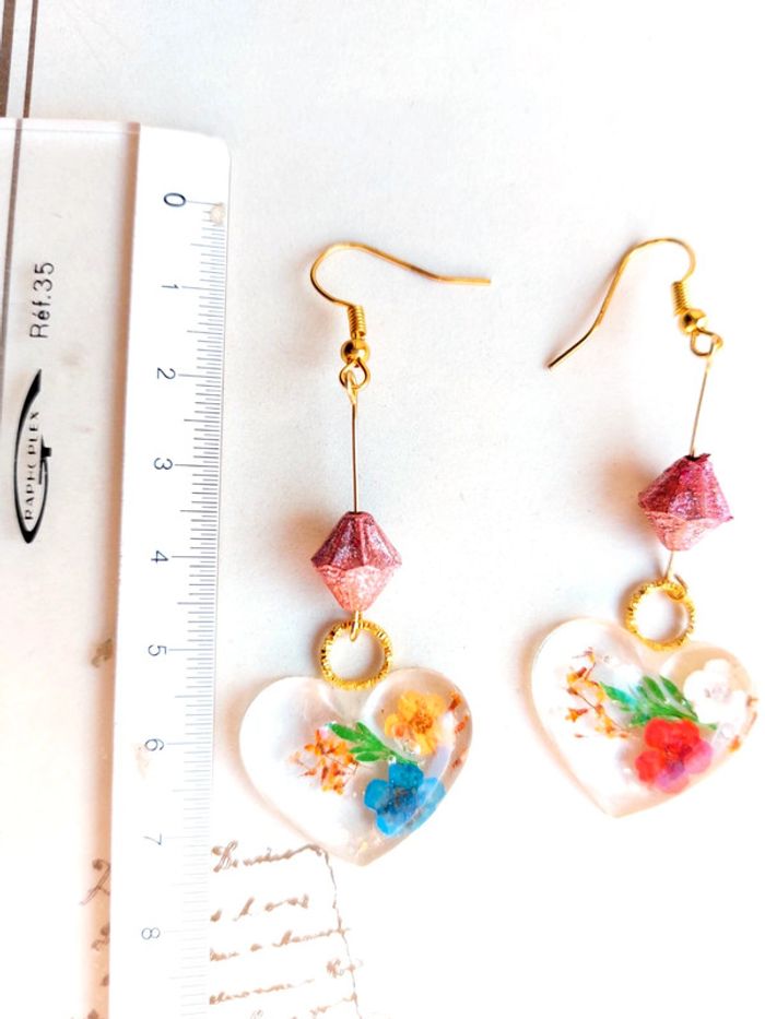 Magnifique paire de boucles d'oreilles pendantes en résine - photo numéro 4