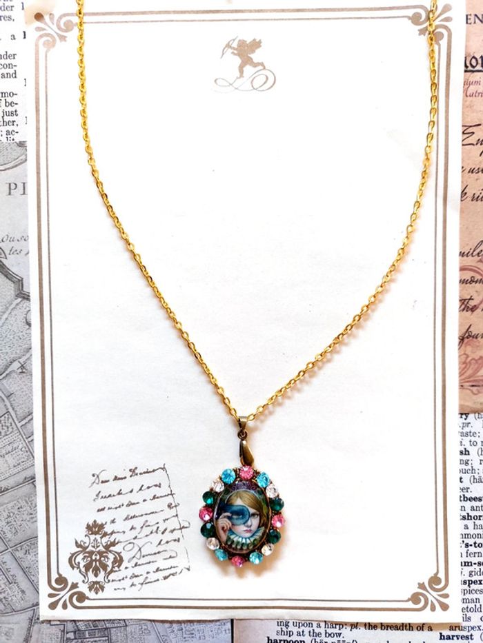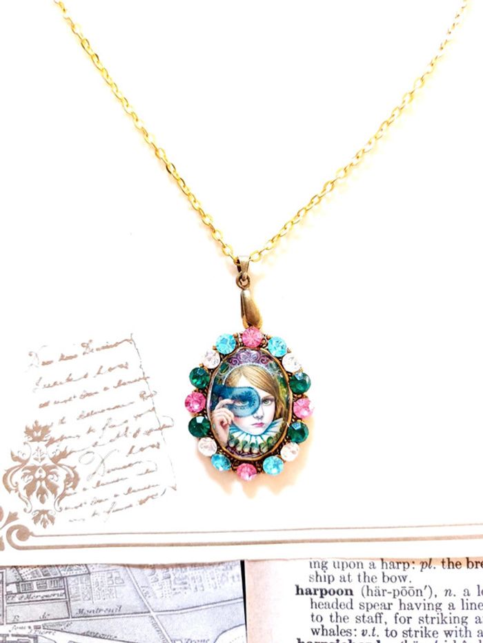 Magnifique collier chaîne doré avec pendentif médaillon à strass multicolore, portrait enfant. Très bon état. D'autres bijoux sont à découvrir dans mon dressing #bijouxsupernova 🌌 Je suis disponible pour d'autres renseignements / ou demandes de lot. 🌌 Les envois se font soit le jour même ou en 72h maxi ! 🌌 J'accepte les offres raisonnables et les réductions sont activées sur les lots, de plus, un petit cadeau est toujours rajouté au colis. Tags Mode vintage chic hippie 60's 70's 80's 90's BCBG robe chemise pantalon jupe classe bijoux boucles d'oreilles collier pendentif bracelet celtique ethnique bohème ésotérique gothique punk grunge old school geek ancien brocante friperies france Paris parisienne qualité couture tournesol marilyn Monroe astro cosmétiques produits de beauté tissu japon breloque acier inoxydable plaqué or automne hiver printemps été Noël cadeau lune moon child fleurs petit prix réduction lot chouchou scrunchie rétro kawaii japon t-shirt débardeur tunique blouse chemisier camisa camicia vestido vestito pantalones remise lotes jurk Flores brillant coton polyester satin soie jeans elastane sexy élégant pièce rare rome Madrid multicolore noir blanc rouge bleu jaune vert rose orange violet marron pas cher soldes 50% unique look outfit tenue complète conjunto