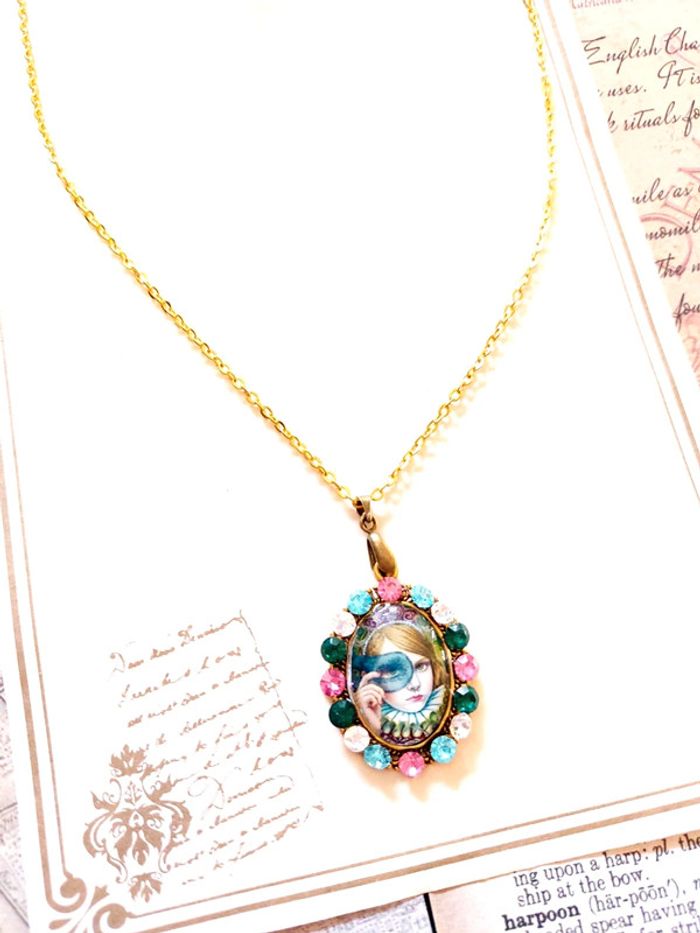 Magnifique collier avec pendentif style vintage victorien steampunk