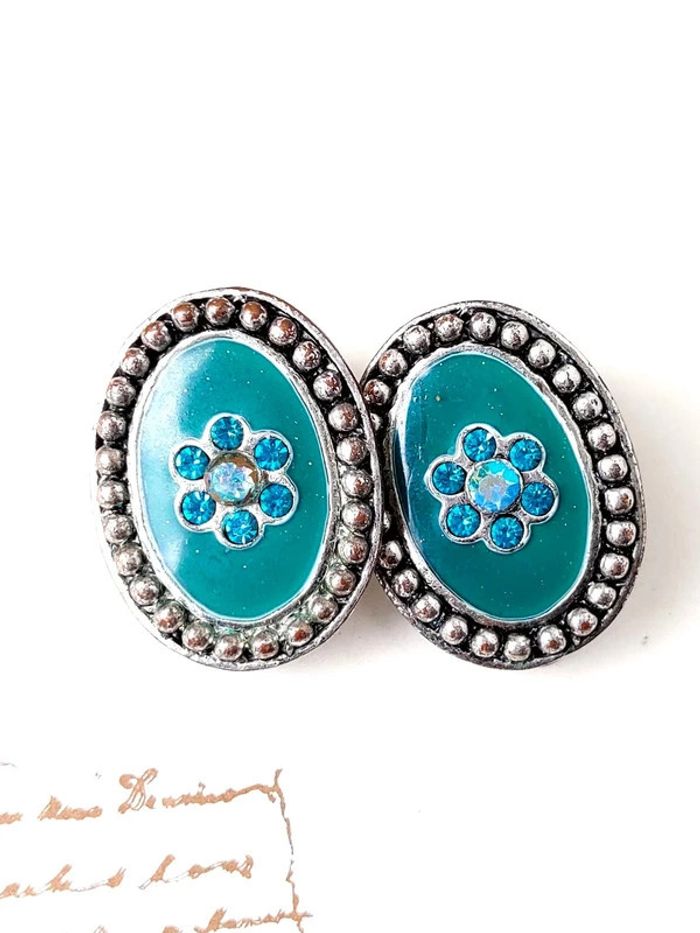 Magnifique paire de boucles d'oreilles à clip, signée street paris. Avec pierres. Bon état général. D'autres bijoux sont à découvrir dans mon dressing #bijouxsupernova 🌌 Je suis disponible pour d'autres renseignements / ou demandes de lot. 🌌 Les envois se font soit le jour même ou en 72h maxi ! 🌌 J'accepte les offres raisonnables et les réductions sont activées sur les lots, de plus, un petit cadeau est toujours rajouté au colis. Tags Mode vintage chic hippie 60's 70's 80's 90's BCBG robe chemise pantalon jupe classe bijoux boucles d'oreilles collier pendentif bracelet celtique ethnique bohème ésotérique gothique punk grunge old school geek ancien brocante friperies france Paris parisienne qualité couture tournesol marilyn Monroe astro cosmétiques produits de beauté tissu japon breloque acier inoxydable plaqué or automne hiver printemps été Noël cadeau lune moon child fleurs petit prix réduction lot chouchou scrunchie rétro kawaii japon t-shirt débardeur tunique blouse chemisier camisa camicia vestido vestito pantalones remise lotes jurk Flores brillant coton polyester satin soie jeans elastane sexy élégant pièce rare rome Madrid multicolore noir blanc rouge bleu jaune vert rose orange violet marron pas cher soldes 50% unique look outfit tenue complète conjunto