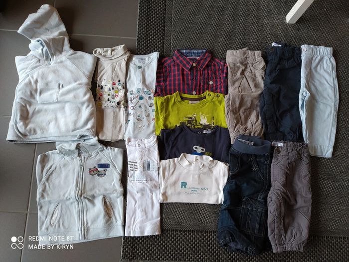14 pièces 1 veste molletonné 1 jogging (bon état) 4 pantalons hiver chauds 1 gilet (fin vertbaudet) 7 hauts manches longues. #kanoema_9moisG