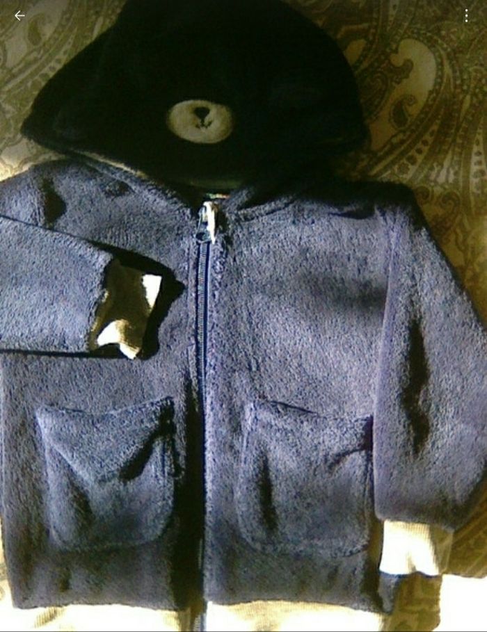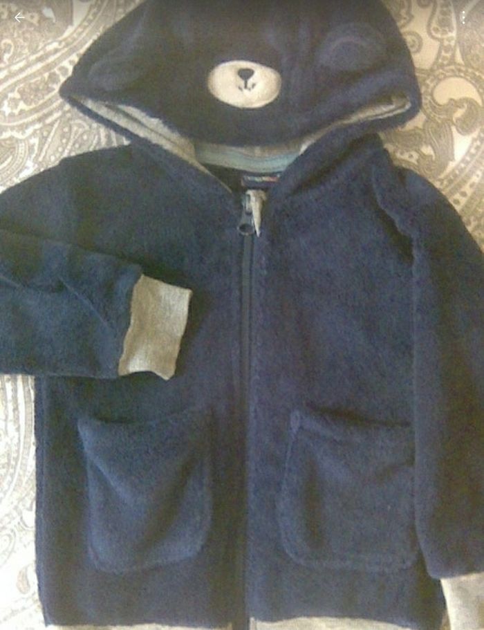 Veste polaire baby ourson đŸ» Bleue marine, bouts des manches et bas de veste gris. Trois minuscules trous sur le bas de la veste, avec un tout petit point de couture on ne les voit plus...â˜ș Taille 86/92 cm (18/24 mois), marque Lupilu.