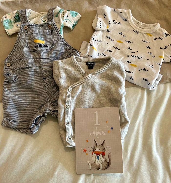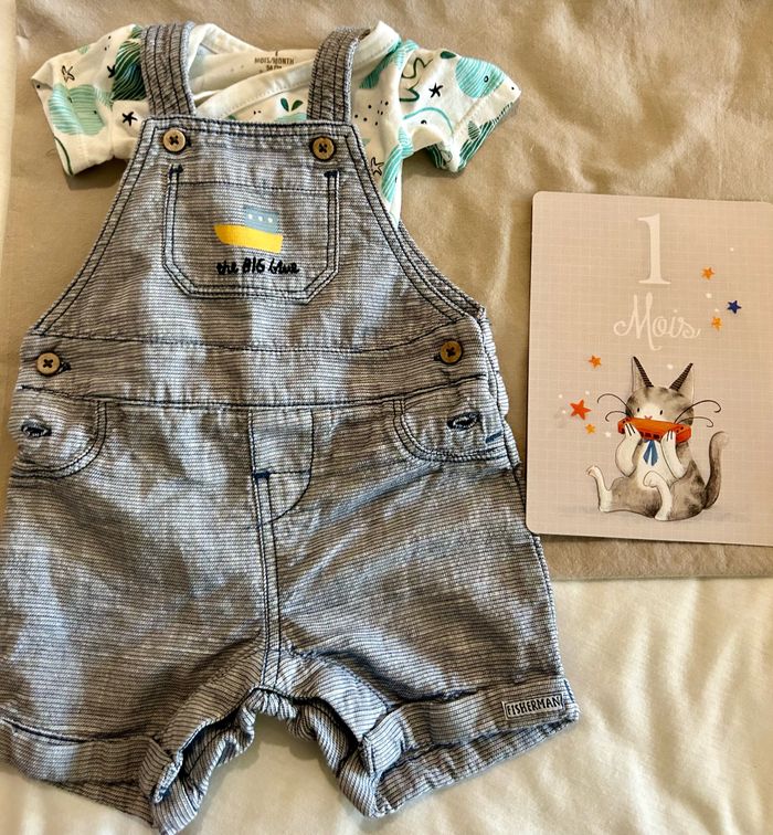 Ensemble salopette Orchestra 1mois Salopette (short) Orchestra Bodies manche courte Orchestra T-shirt Orchestra Veste kiabi Jamais porté sauf la veste kiabi (quelques fois) Pas de saison ! —————————— #ensemblebebe #ensemblegarçon1mois #1mois #orchestra #kiabi #salopettebebe #bodiesmanchescourtes #vestebebe