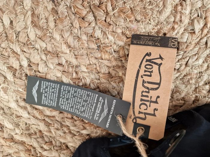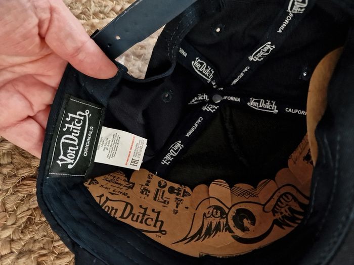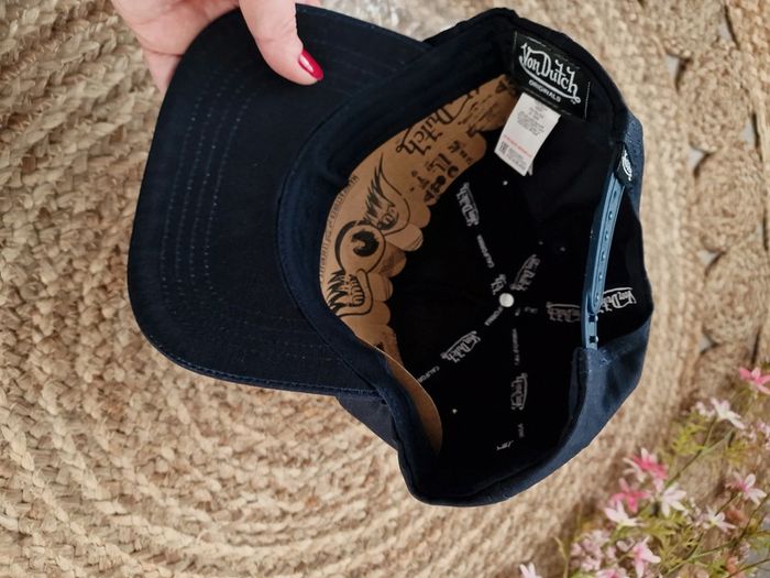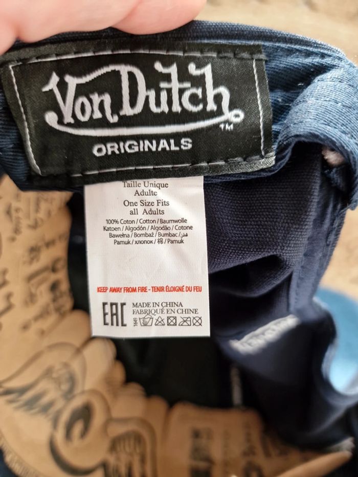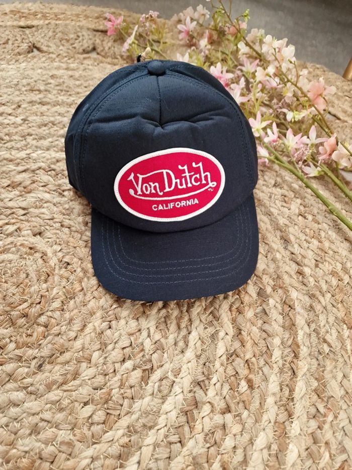 Casquette homme , neuve Étiqueté VON DUTCH Taille unique, réglable à l'arrière Il y a un pli dut au fait qu'elle était emballé, un coup de vapeur , on en parle plus 😉