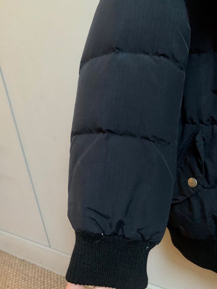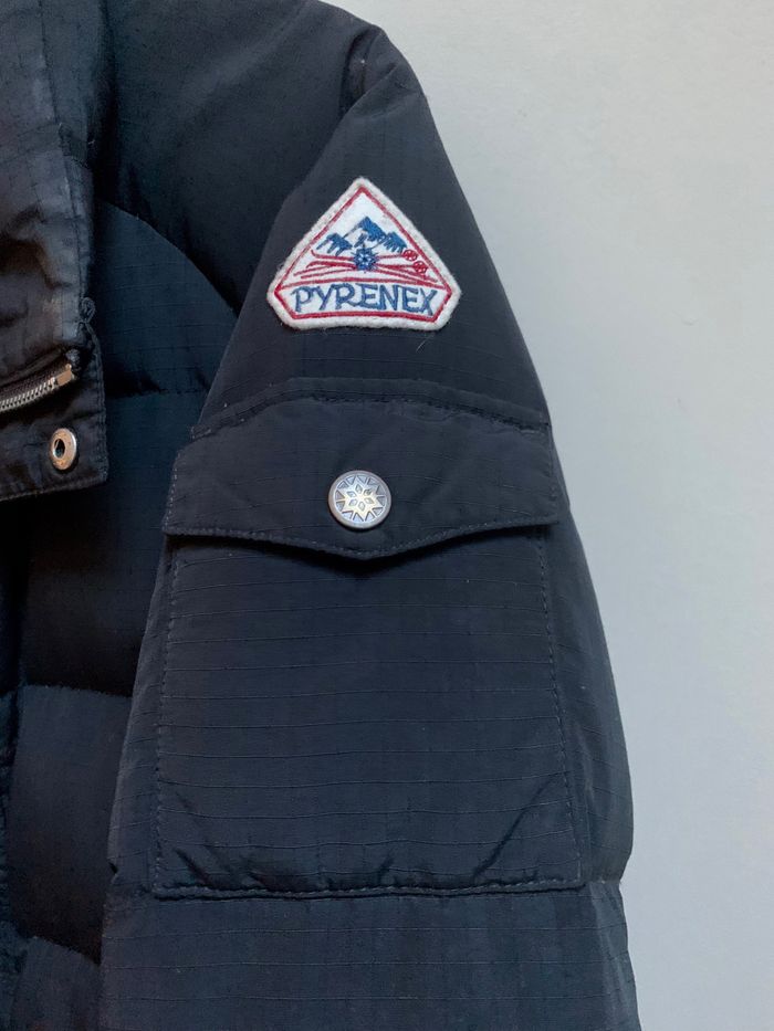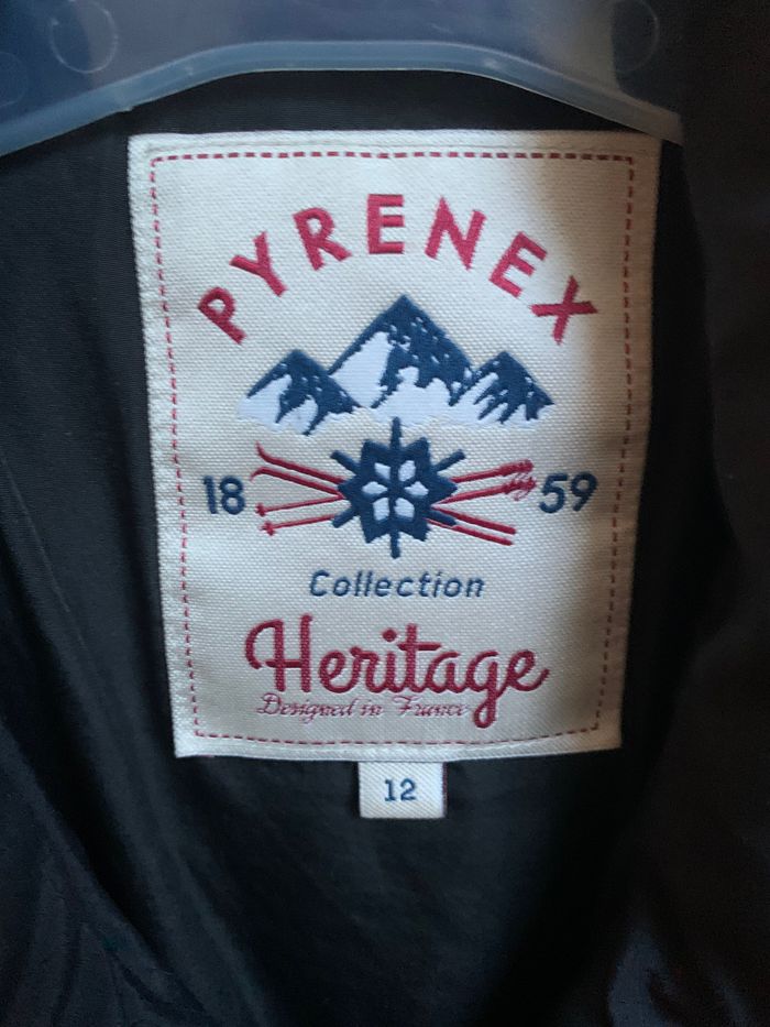 Doudoune très chaude PYRENEX (collection Héritage), coloris noir Composition : 80% duvet de canard, 20% plumes de canard Taille 12 ans : hauteur 58 cm, largeur sous aisselles 46 cm, largeur épaules 40 cm, longueur manches (manches raglan) 60 cm Portée une saison, elle est encore en très bel état (pas de tâches, pas d'accrocs), il manque juste la capuche (je ne la retrouve pas!).