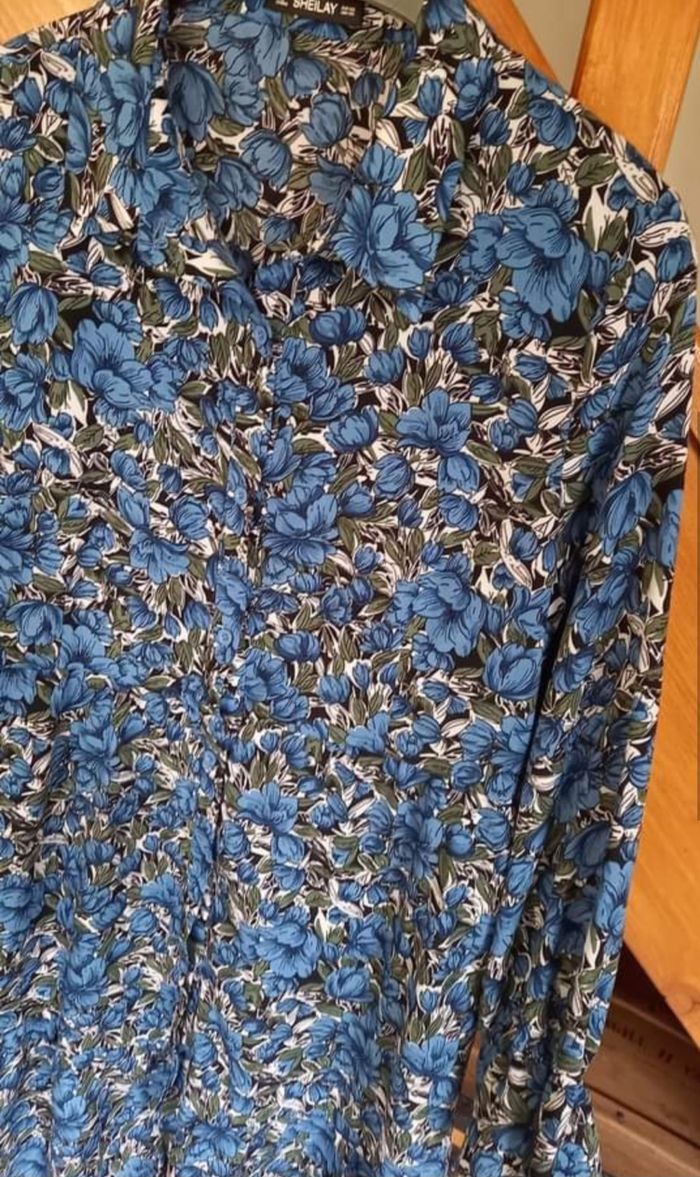 SOLDE -50% 🏷6€ FEMME 44 / XXL N°711 Robe bleu Fleuri Bouton Manche longue , elastique poignée Longueur 91 cm Taille 44/ xxl Neuf plus d 🏷 Sheilay 12€ #kelly_femmeT44