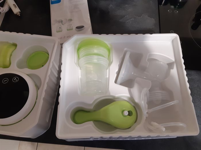 Tire-lait manuel et électrique MAM qui a servie 1mois marche très bien ,facile d'utilisation. Avec deux pots de conservation et 2 biberons 130ml