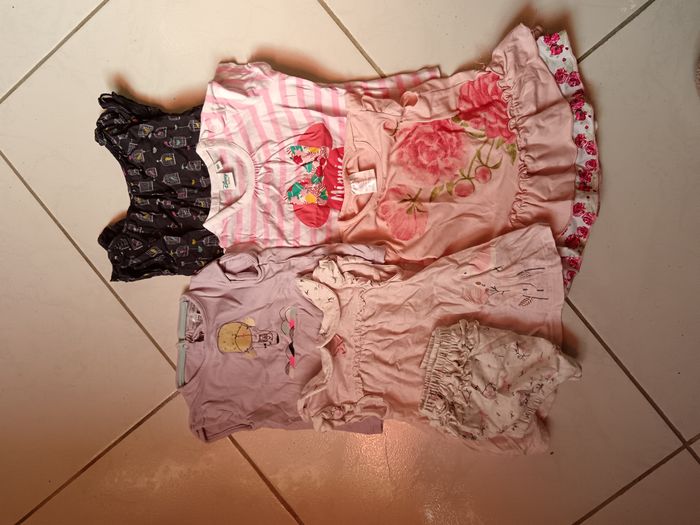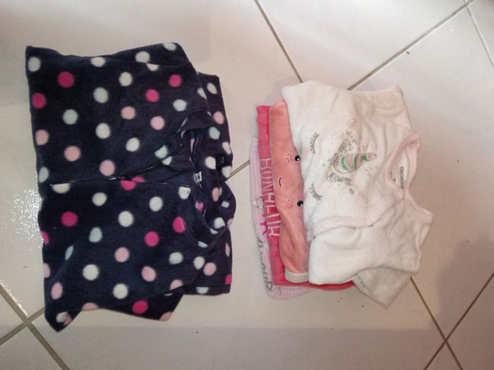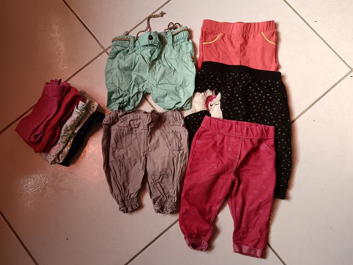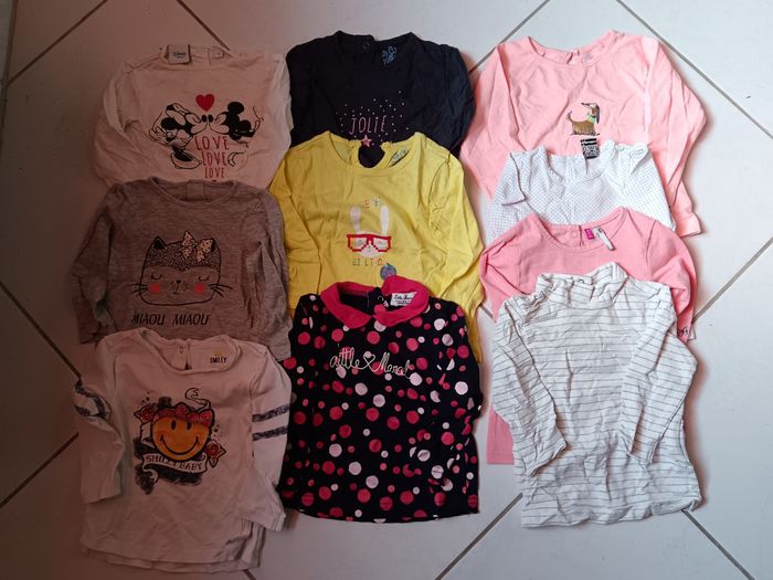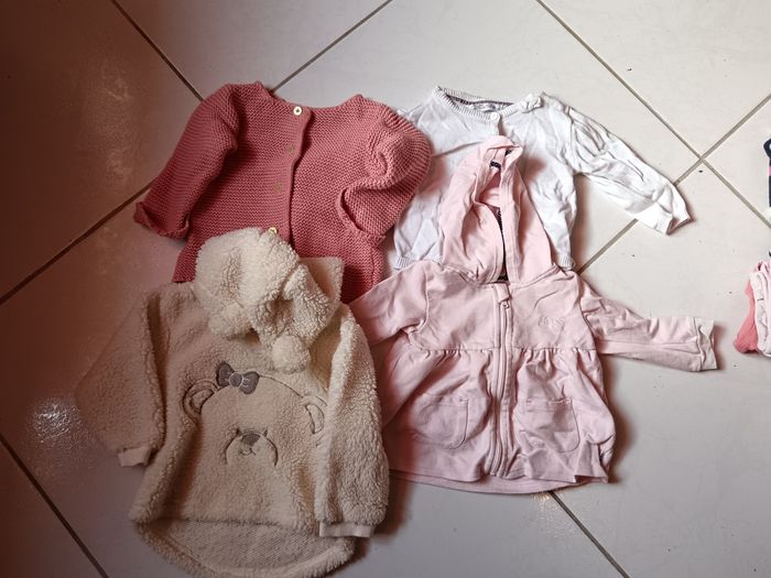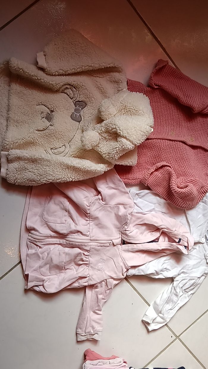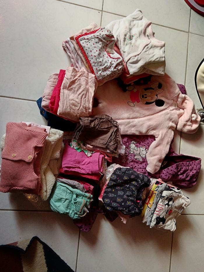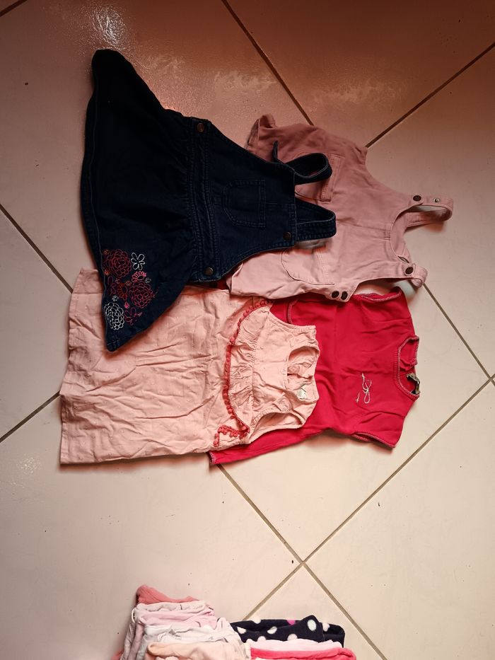 Vend lot avec divers vêtements en 9 mois - 9 pantalons/leggings - 5 pyjamas dont 1 polaire - 10 body manche longue et 1 manche courte - 4 T-shirt manche courte - 10 T-shirt manche longue dont 1 avec une petite tâche - 4 robes - 3 gilets - 1 pull - 2 combis d'hiver Je donne en plus un maillot de bain, 1 pyjama polaire avec une petite tâche ainsi qu'un jean. Le tout dans un état correct ( à été porté plusieurs fois mais peu largement avoir une deuxième vie ) Divers marques ( Kiabi, orchestra, Gémo ...)