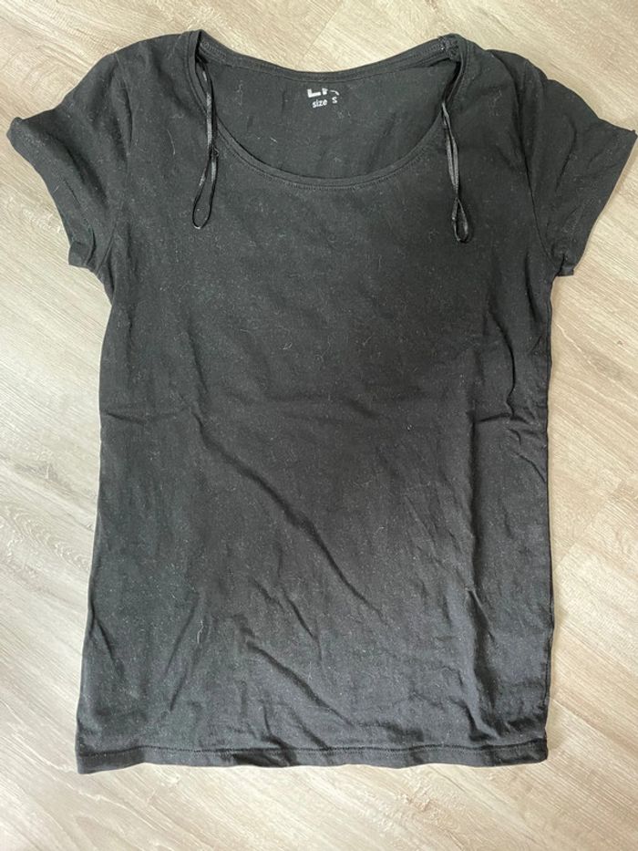 Tee shirt femme noir uni. Très bon état, taille S. 🌸 Pour tous les vêtements à 1€, n’hésitez pas à me contacter pour faire des lots, je baisserais les prix! 🌸 #teeshirtfemme #teeshirtnoiruni