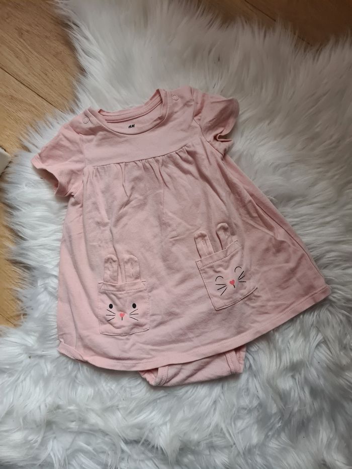 Robe rose pale avec 2 poches lapin Avec bodie H&m 4-6mois 68cm